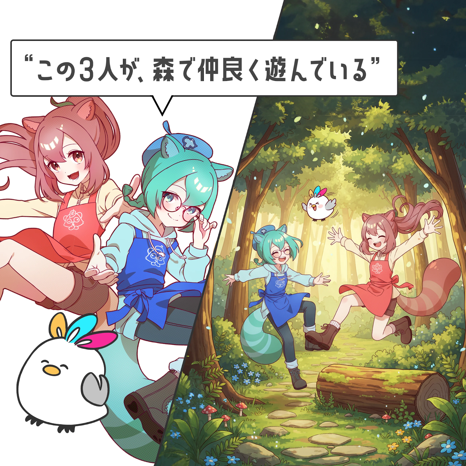 たとえば「キャラクターをカフェで座っている姿にしたい」「夜の街を歩いているようにしたい」といったリクエストも、AIが一瞬で再現してくれます。
