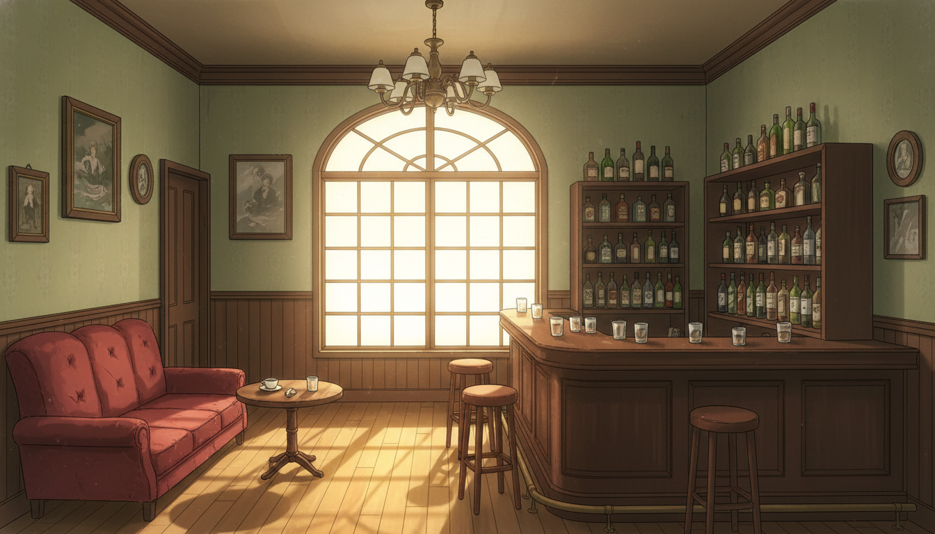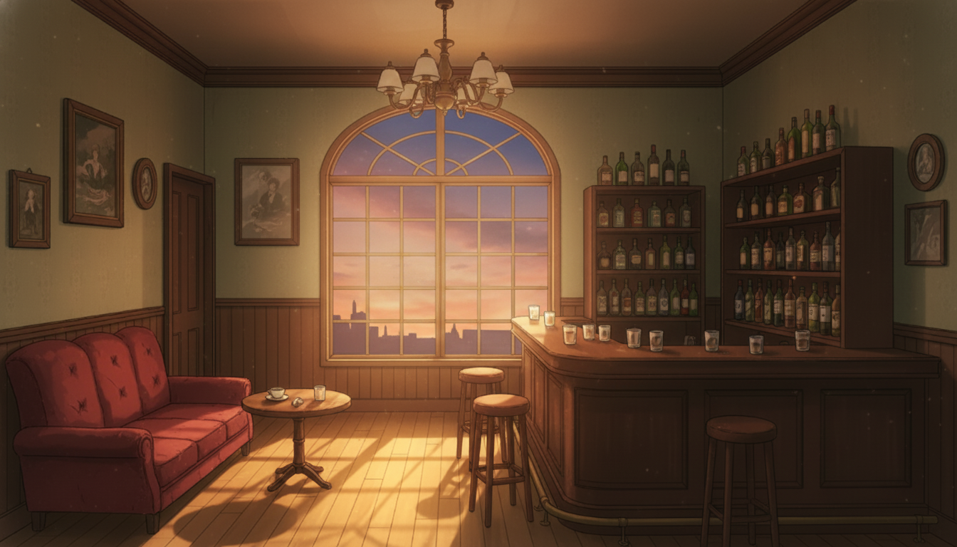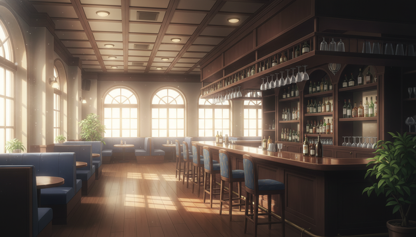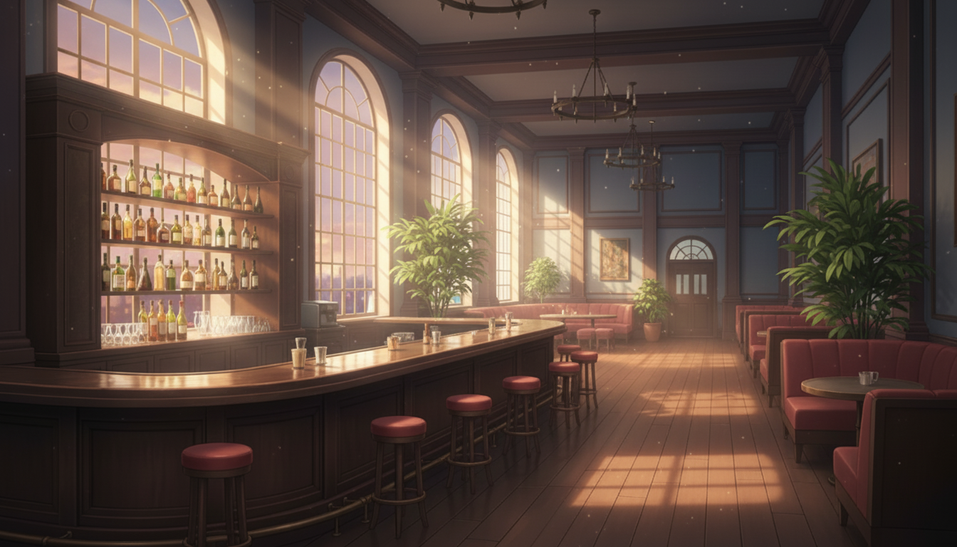 夕暮れのクラシックバー|柔らかな逆光と静寂
