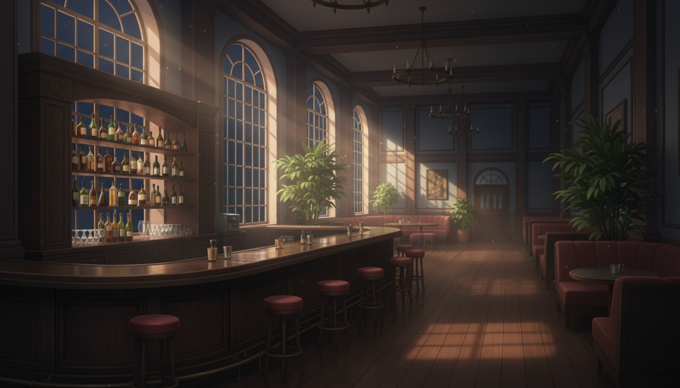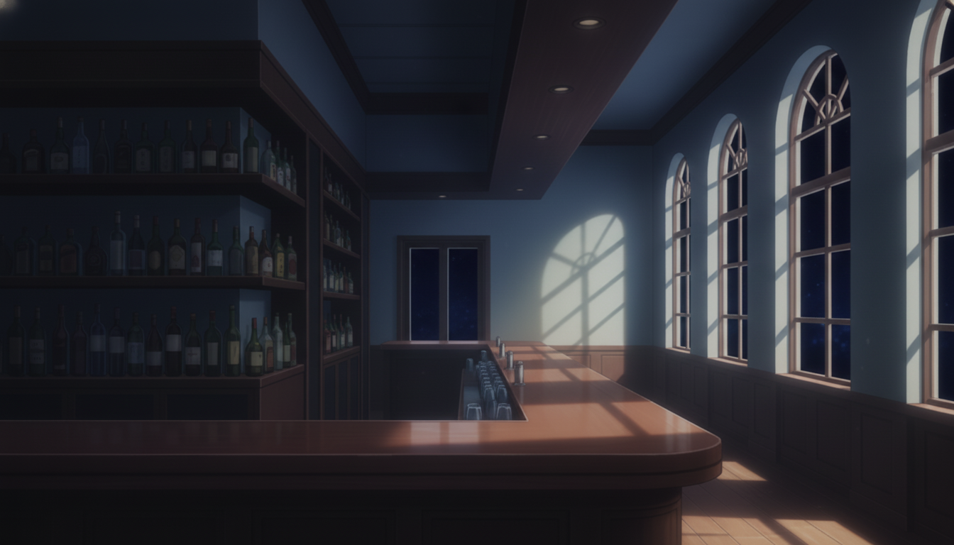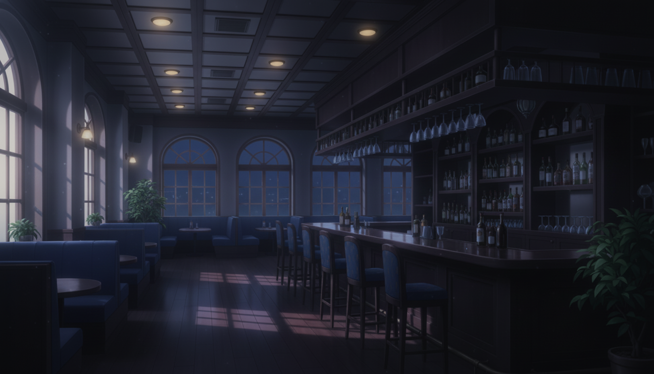 月明かりに沈むバー店内|ナイトブルーの静かな空間