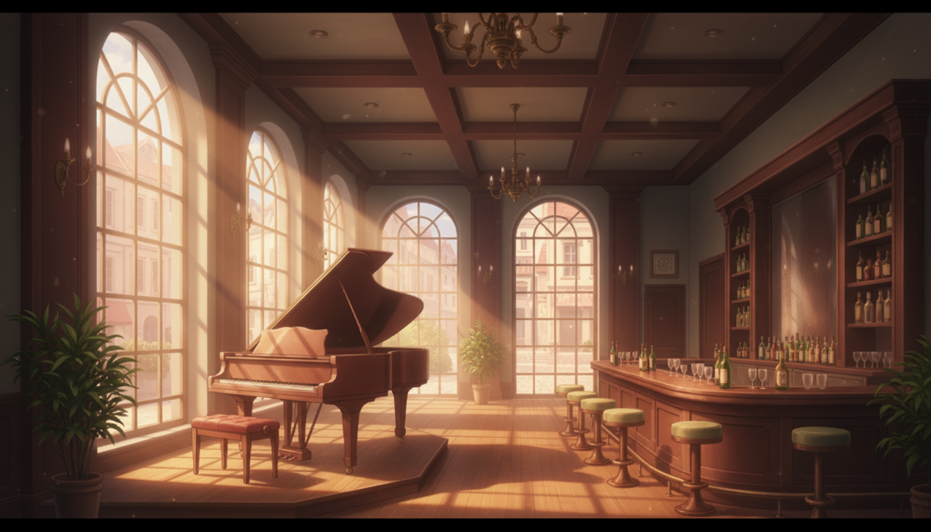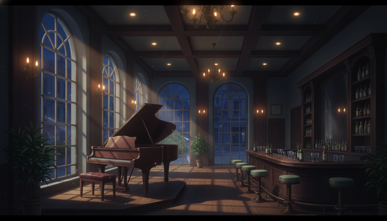 照明を落とした店内が余韻を残し、エンディングや孤独な場面に最適です。