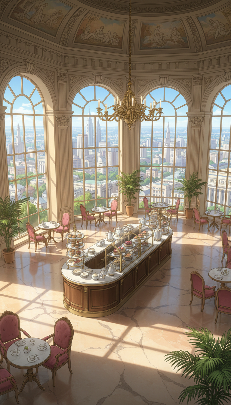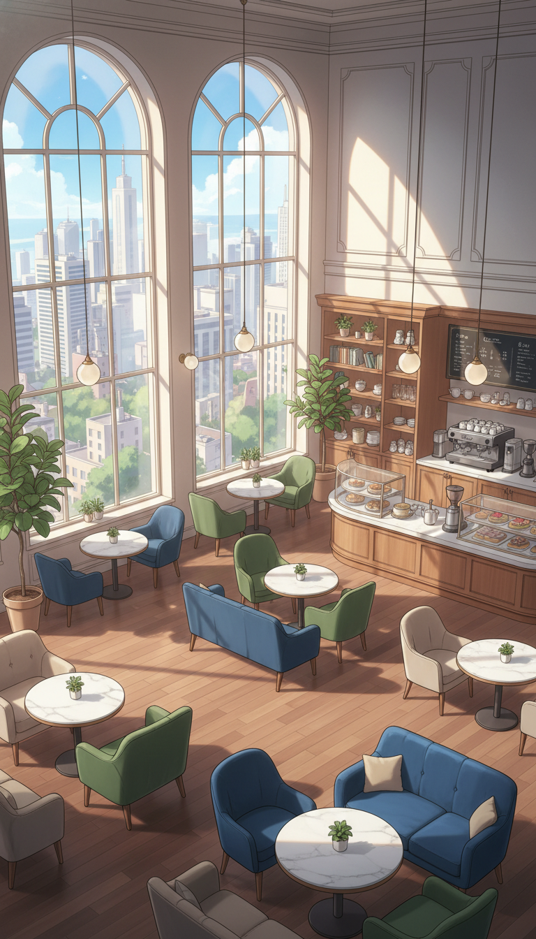 スカイラウンジ風カフェ|優雅な時間が流れる高層の喫茶室