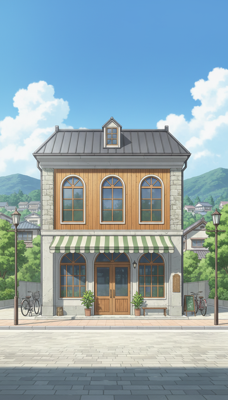 【無料配布】カフェの外観の背景イラスト/縦長— copainter ユーザーは商用可・無償で利用可