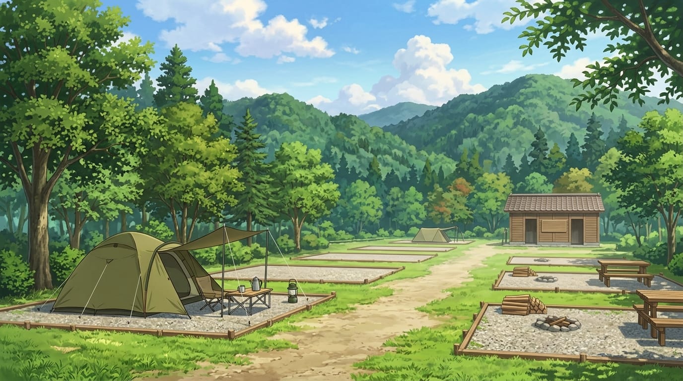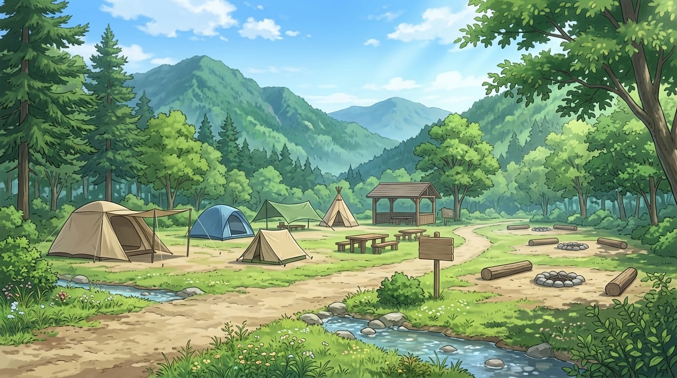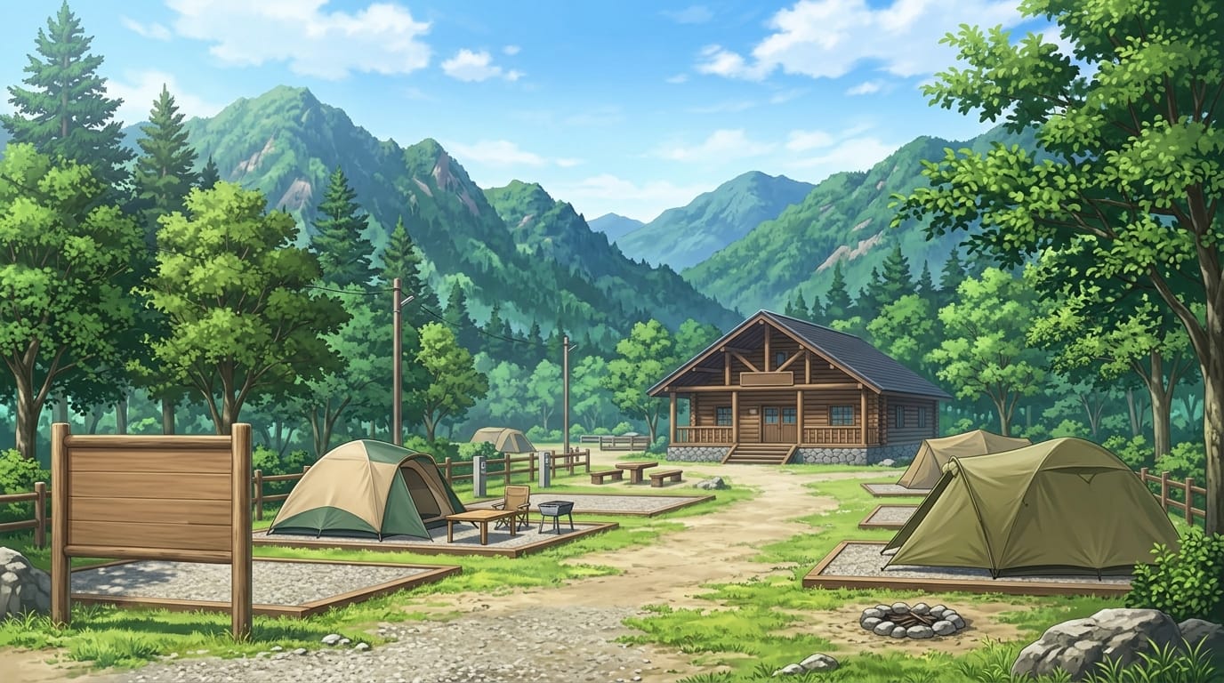 ■ キャンプ場のマンガ・アニメ背景イラスト(ダウンロード可)