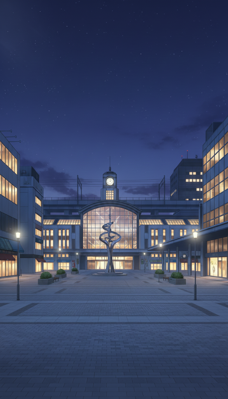 星空の駅前ロータリー|夜の待ち合わせ背景