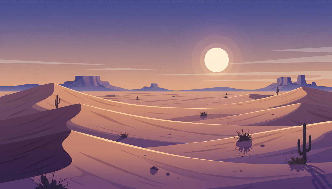 青い夜空と静かな砂丘を描いた、落ち着いた雰囲気の背景素材です。