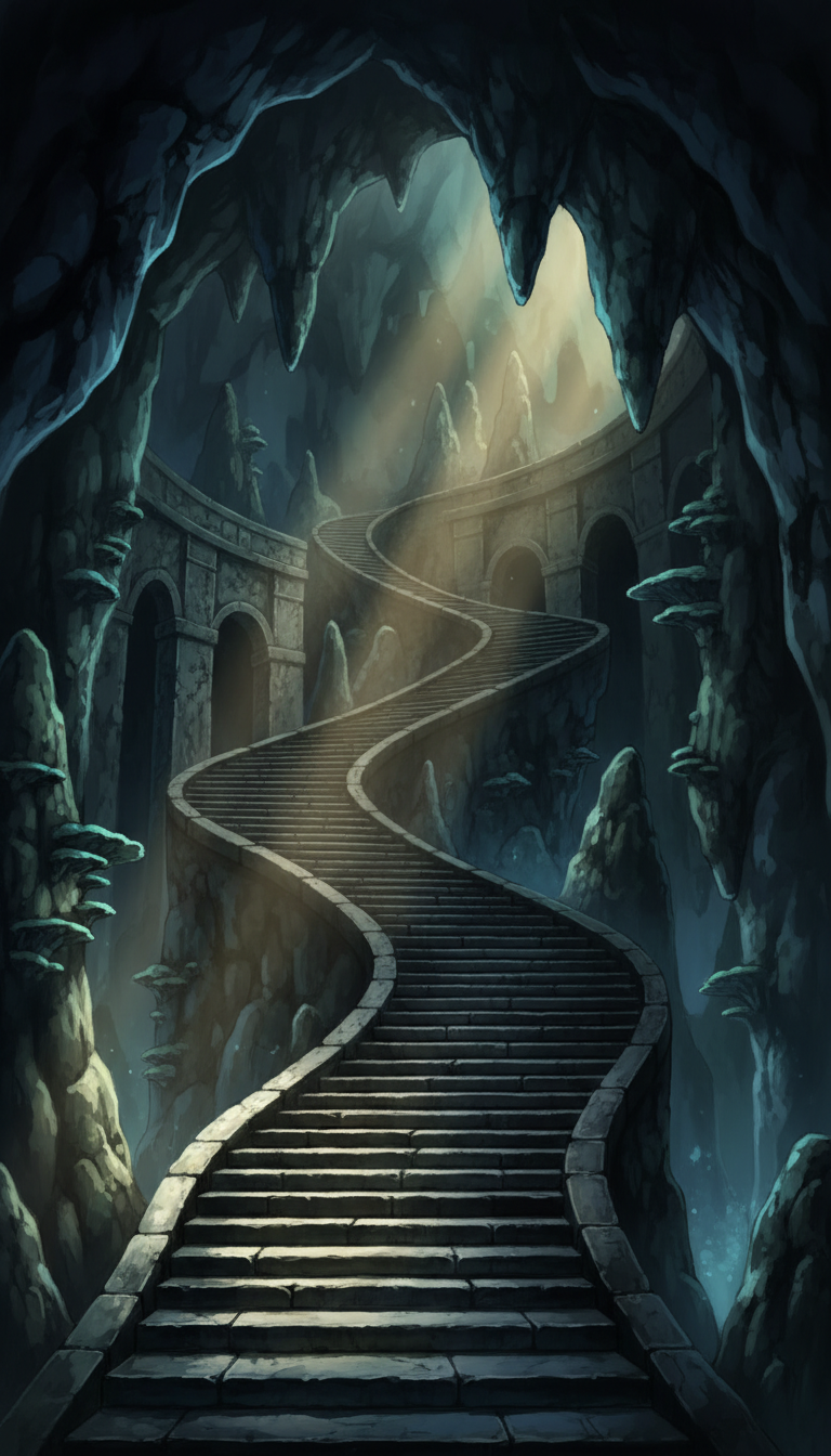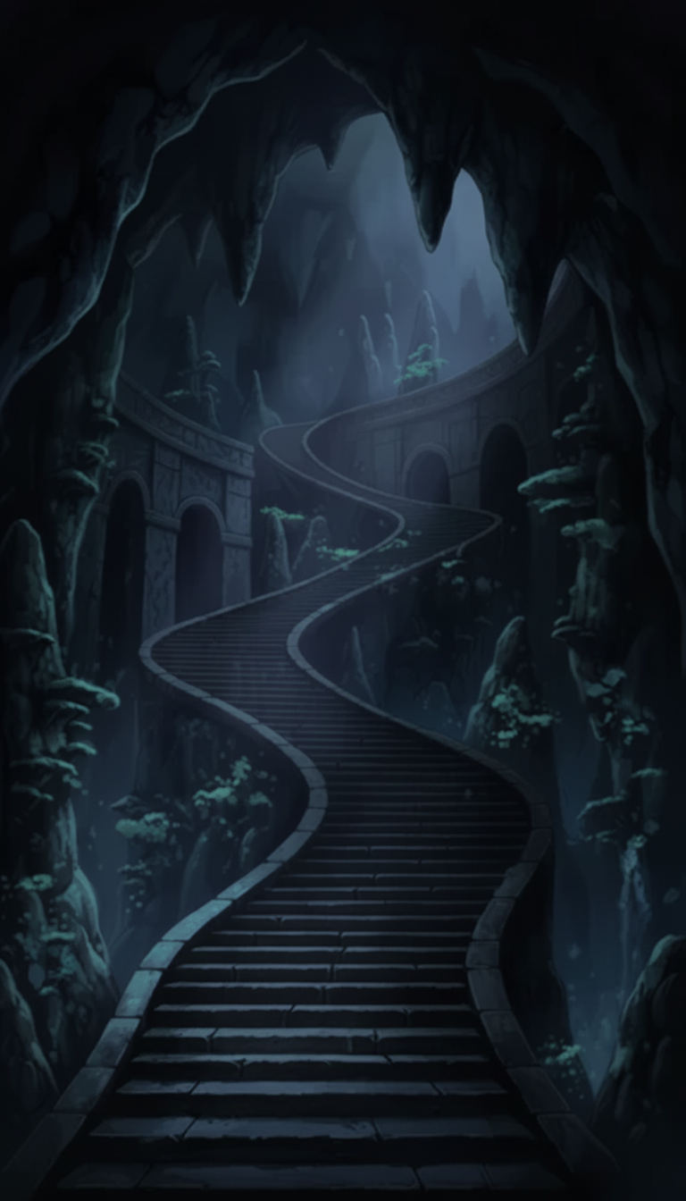 月影の蛇行大階段|静寂の地下回廊背景