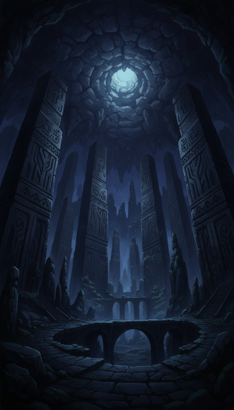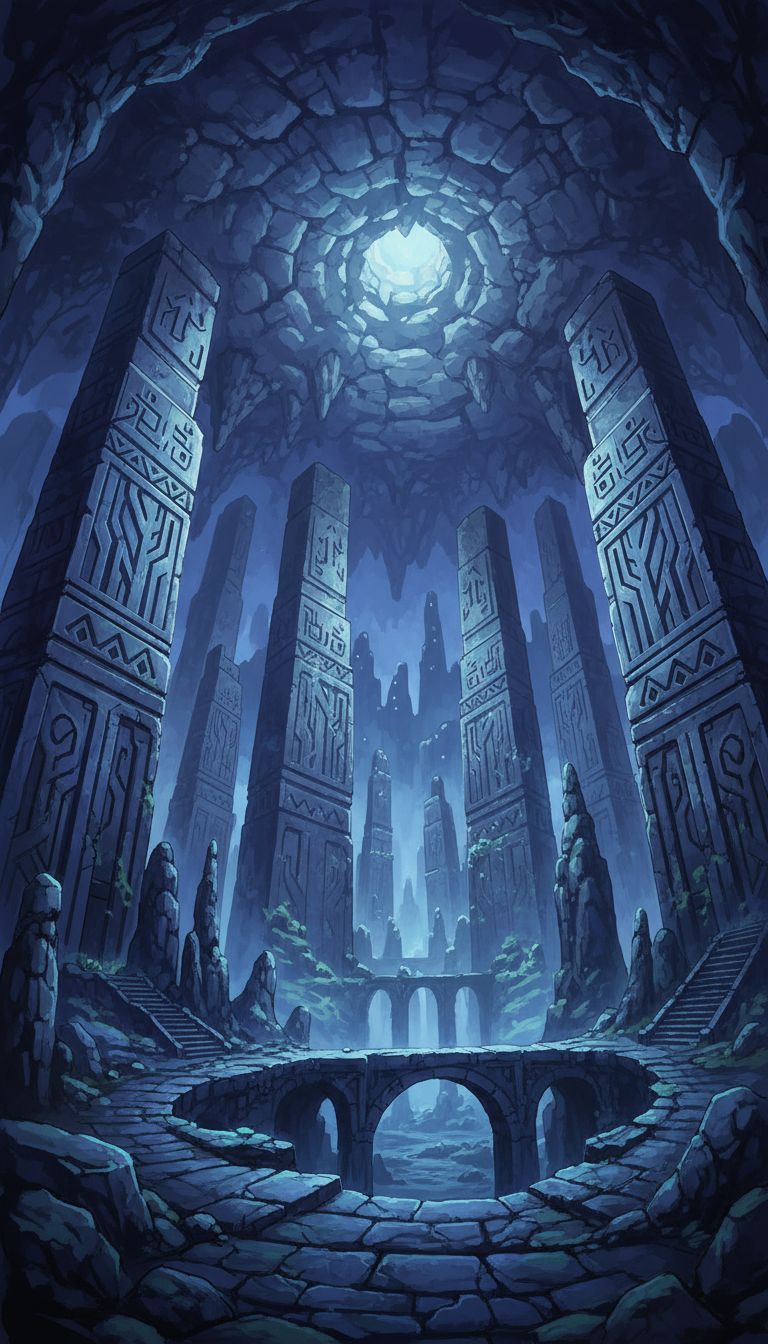 夜影のモノリス神殿|青闇に沈む古代柱の広間