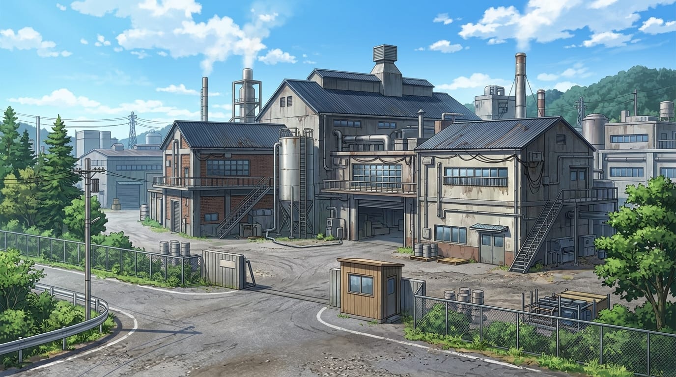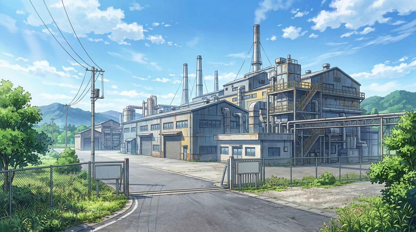 ■ 工場のマンガ・アニメ背景イラスト(ダウンロード可)