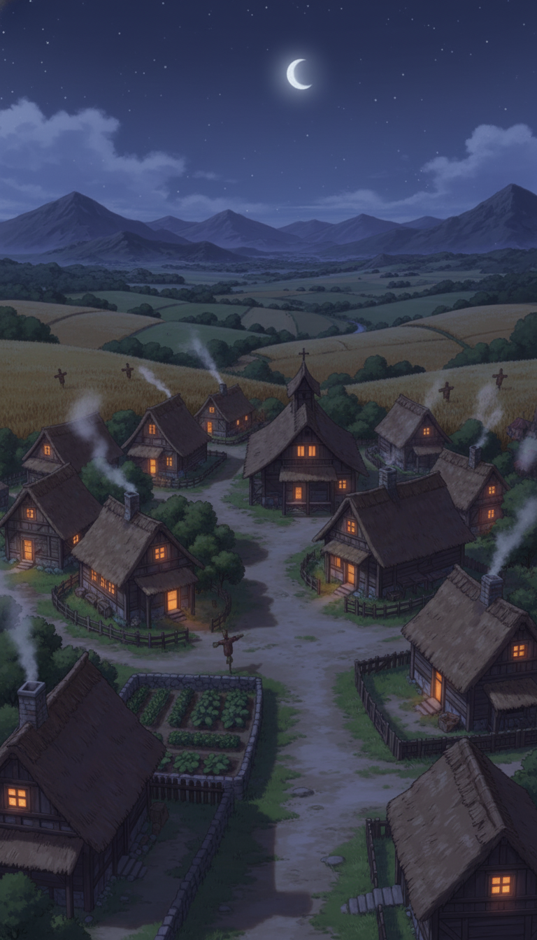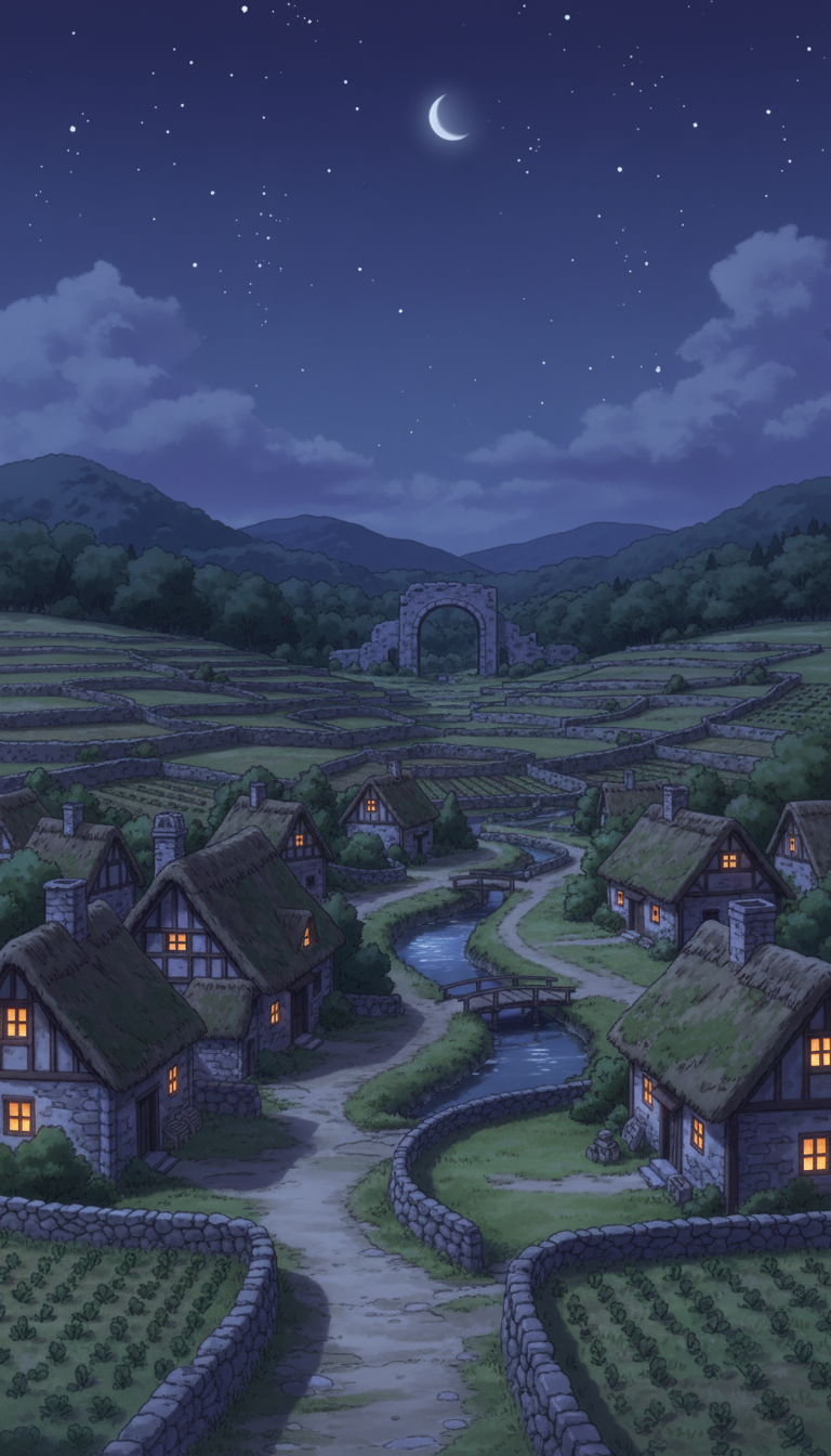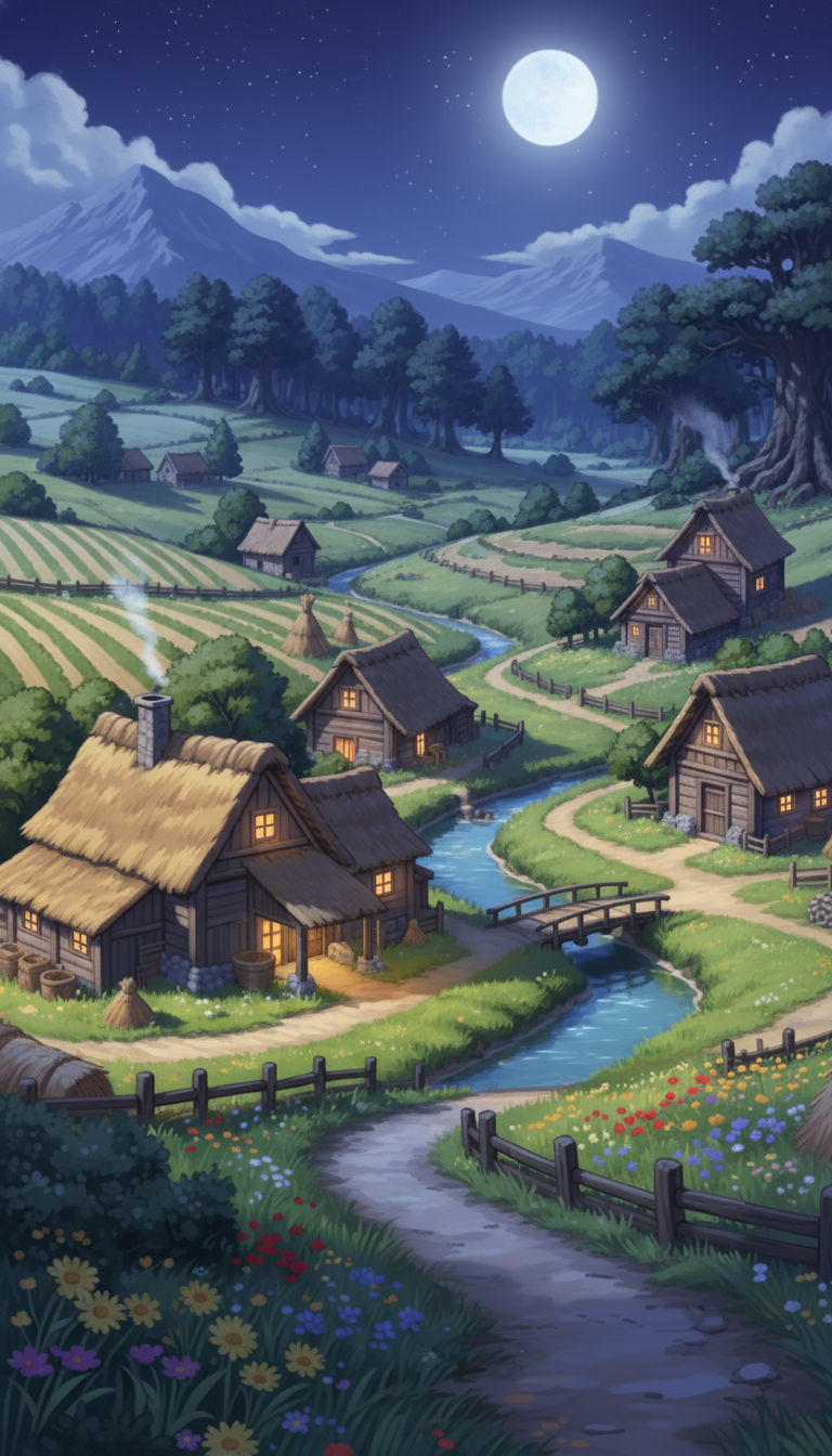 月明かりの中世農村夜景|RPGイベント用ナイトシーン