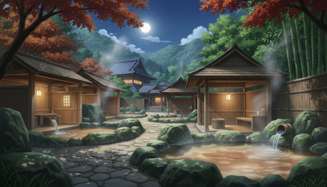 ■ 温泉のマンガ・アニメ背景イラスト(ダウンロード可)