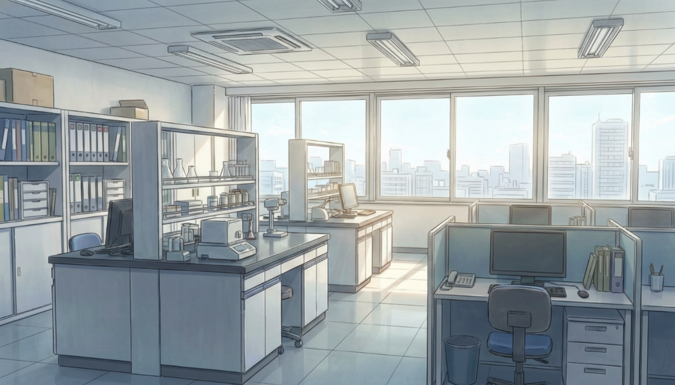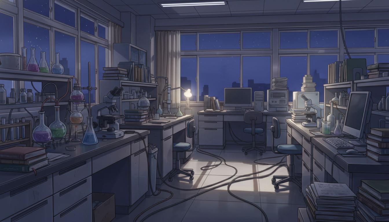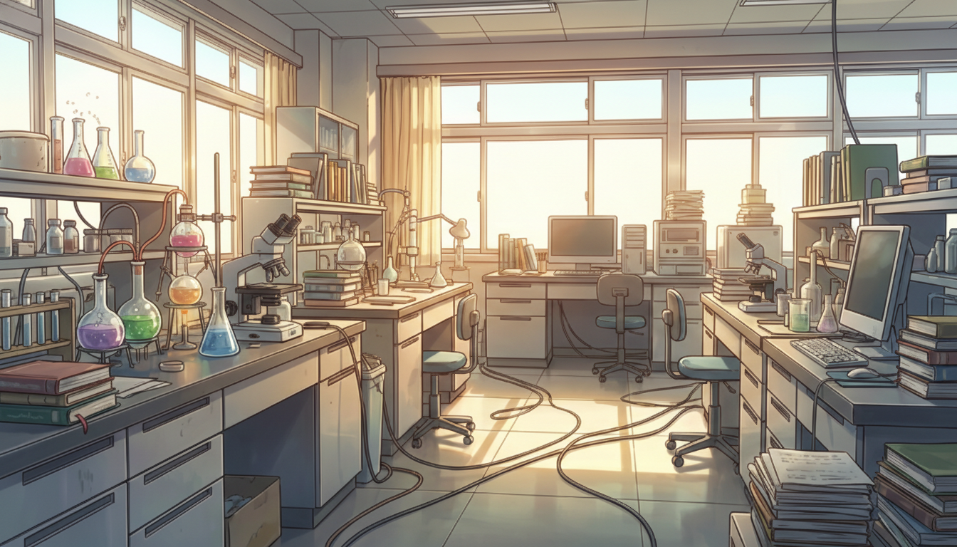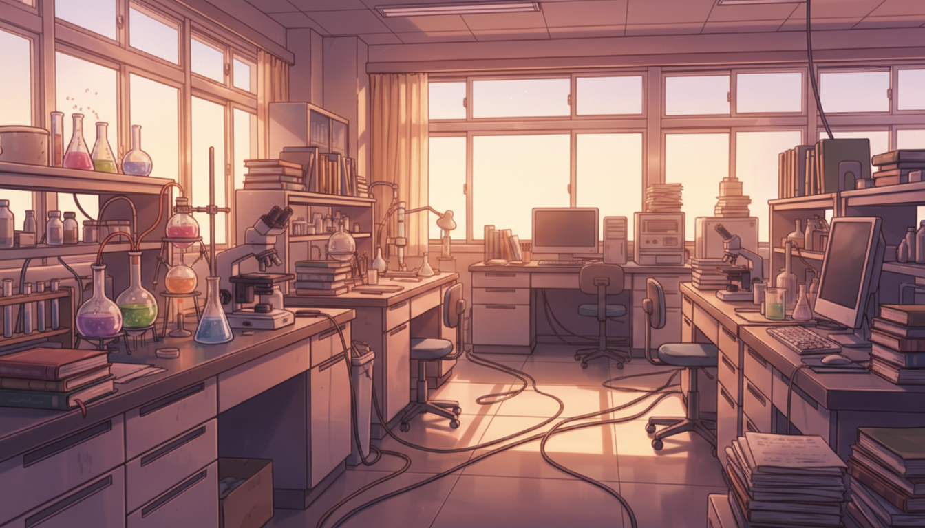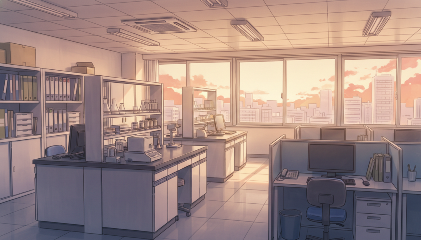 夕方の化学研究室|柔らかな光の実験空間