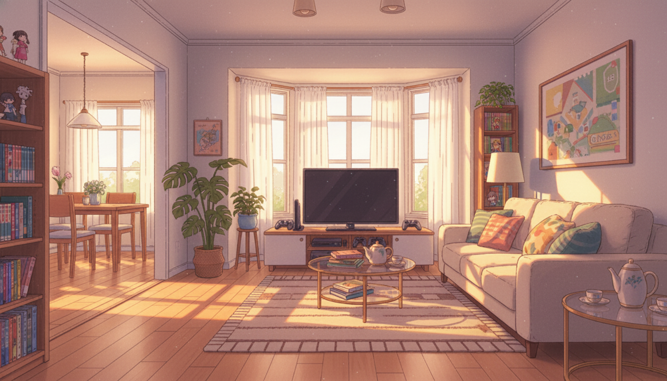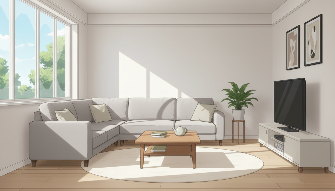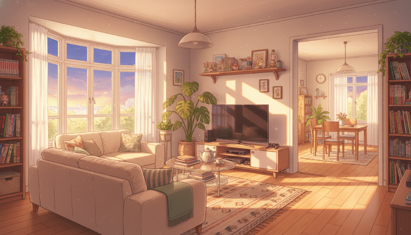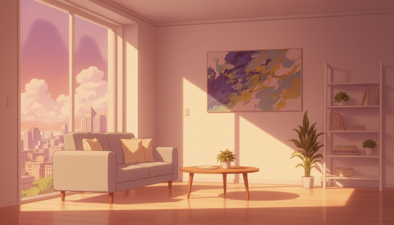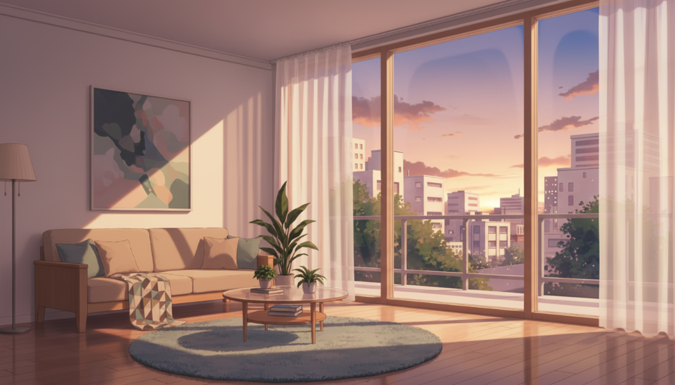 夕方のリビングルーム|柔らかい光に包まれた時間