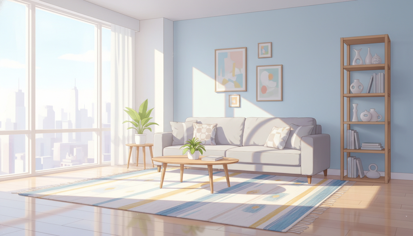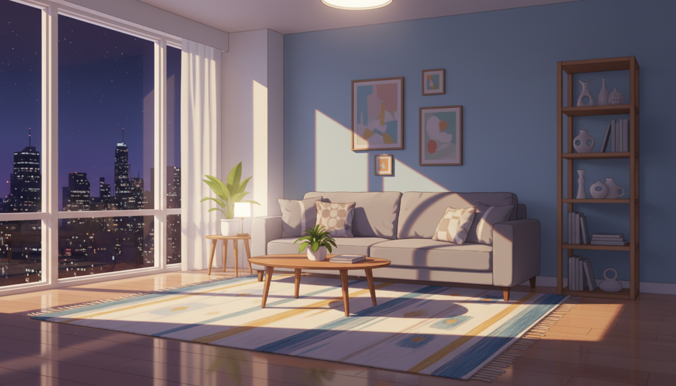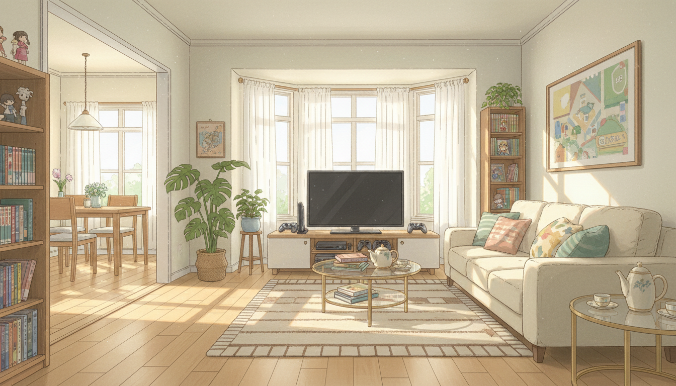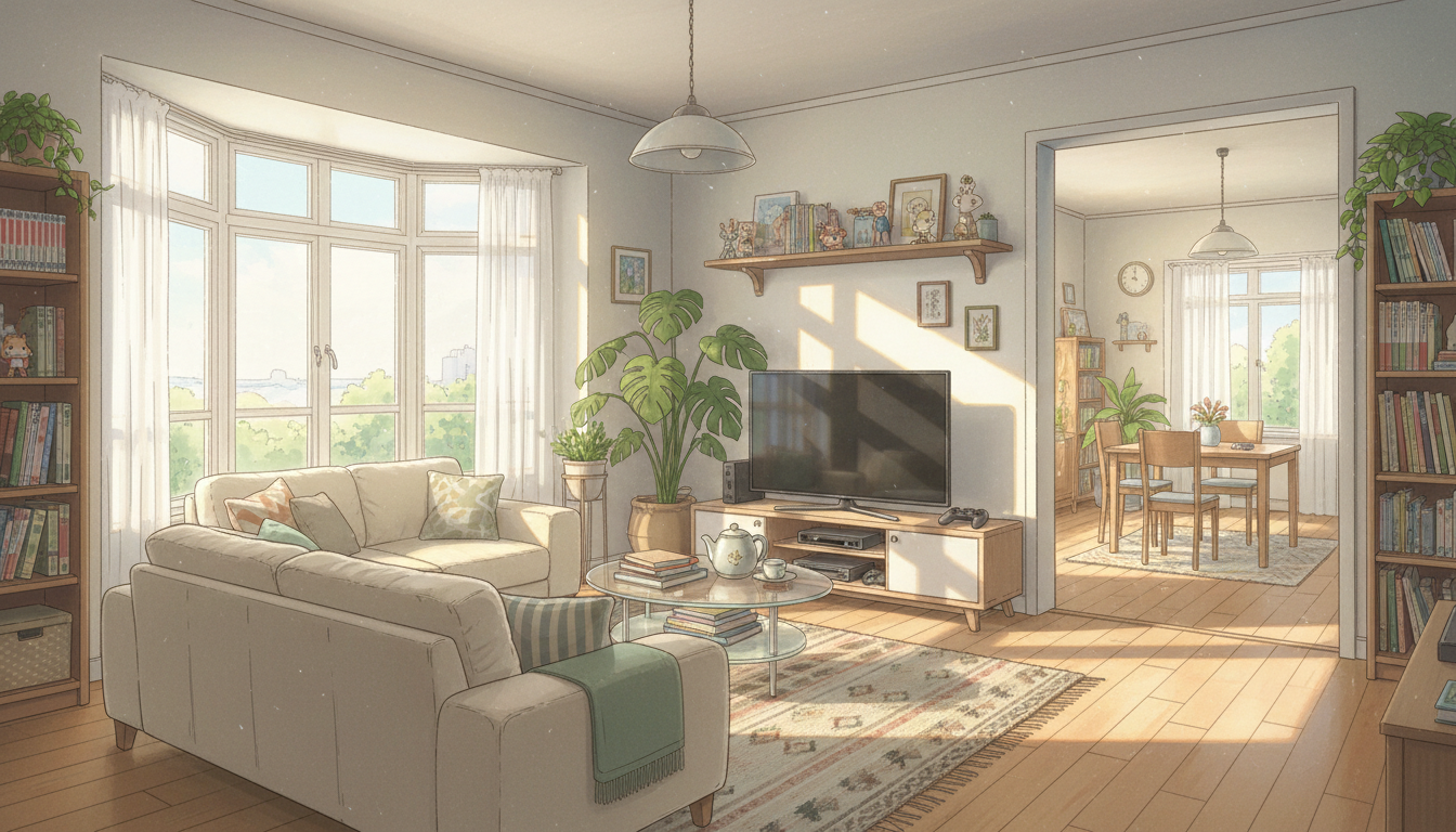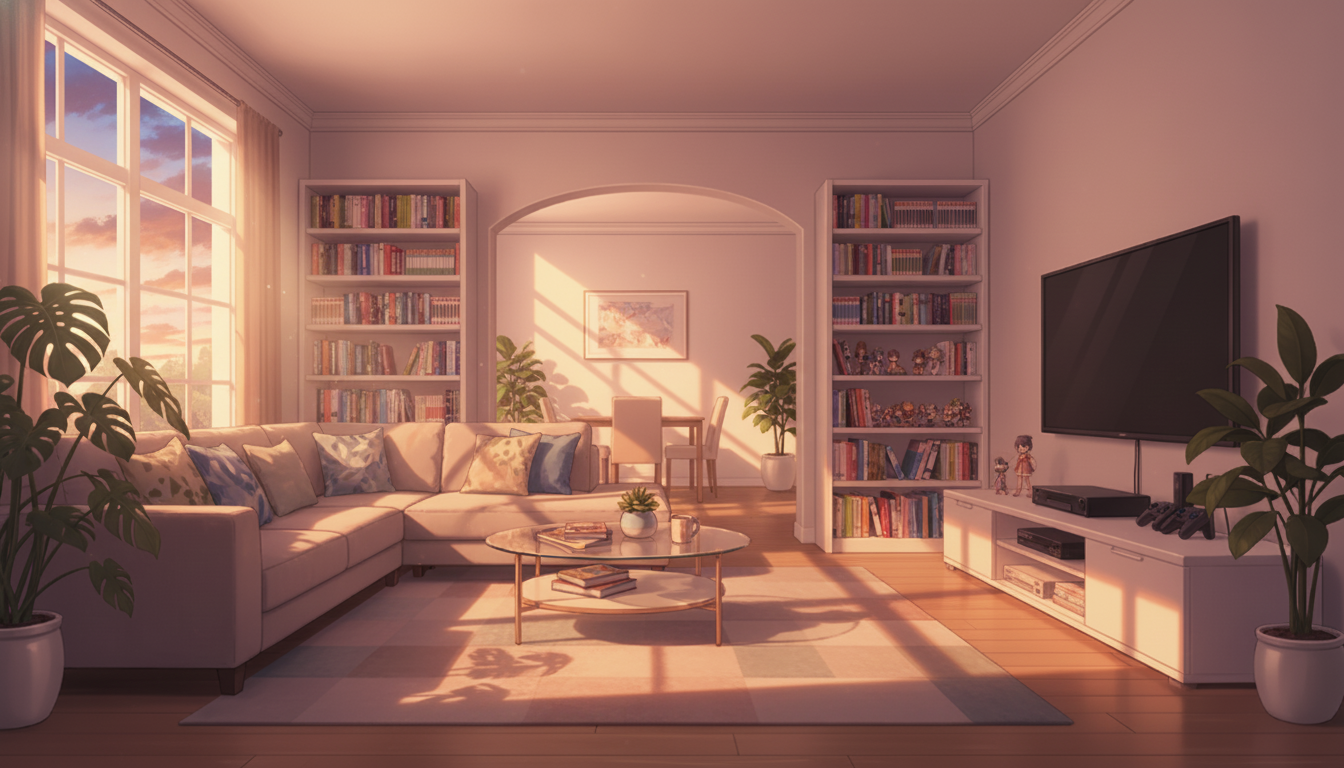 夕方のリビングルーム|柔らかい光に包まれた時間