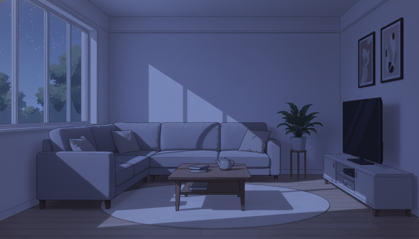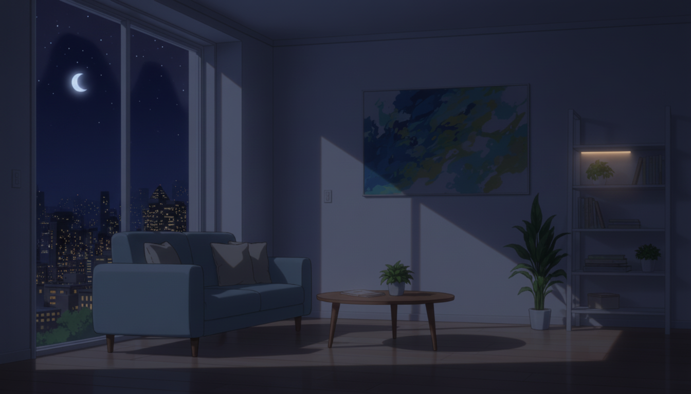星夜のリビングルーム|しっとりとした夜の静けさ