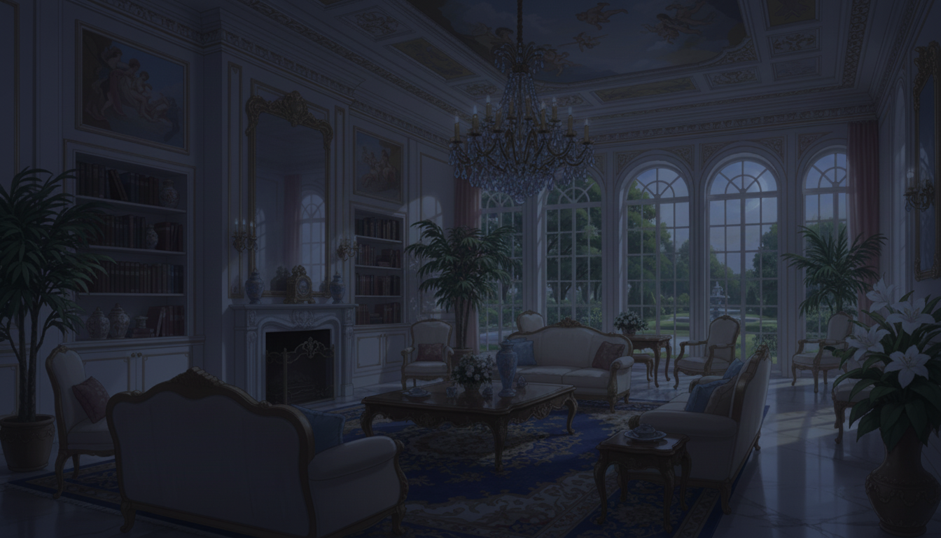 月夜の宮殿リビング|静けさに沈むラグジュアリー空間