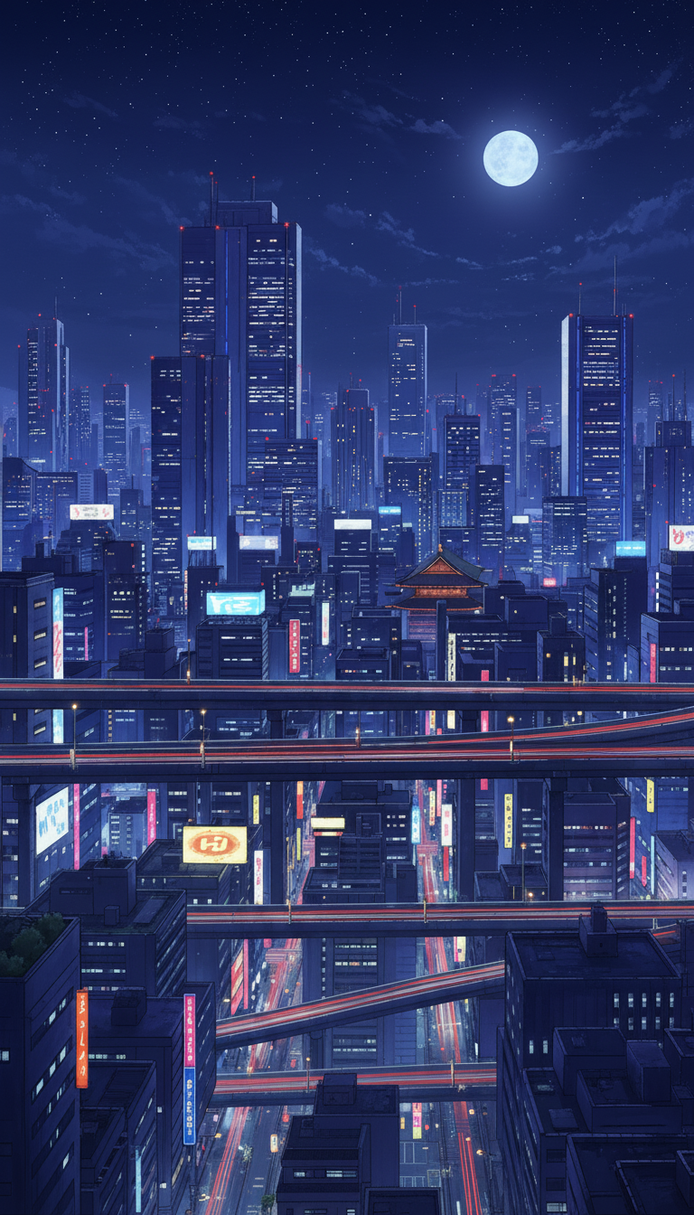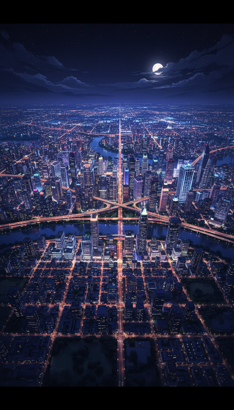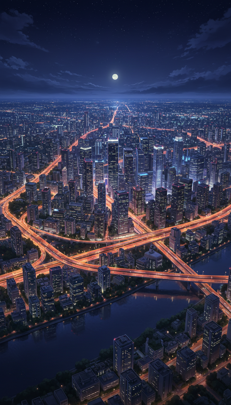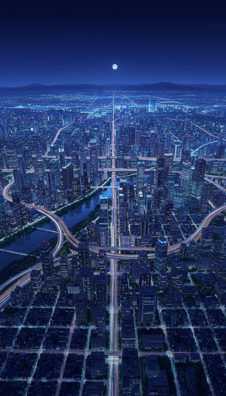 夜景の背景イラスト(縦長/9:16)を無料で配布します。スマホ向け作品に便利な縦長の素材です。俯瞰構図のイラストも多くとても便利です。ウェブトゥーン/ゲーム/漫画、その他広告を含めてご活用ください。商用利用可&無償、トレース、加筆修正可。
