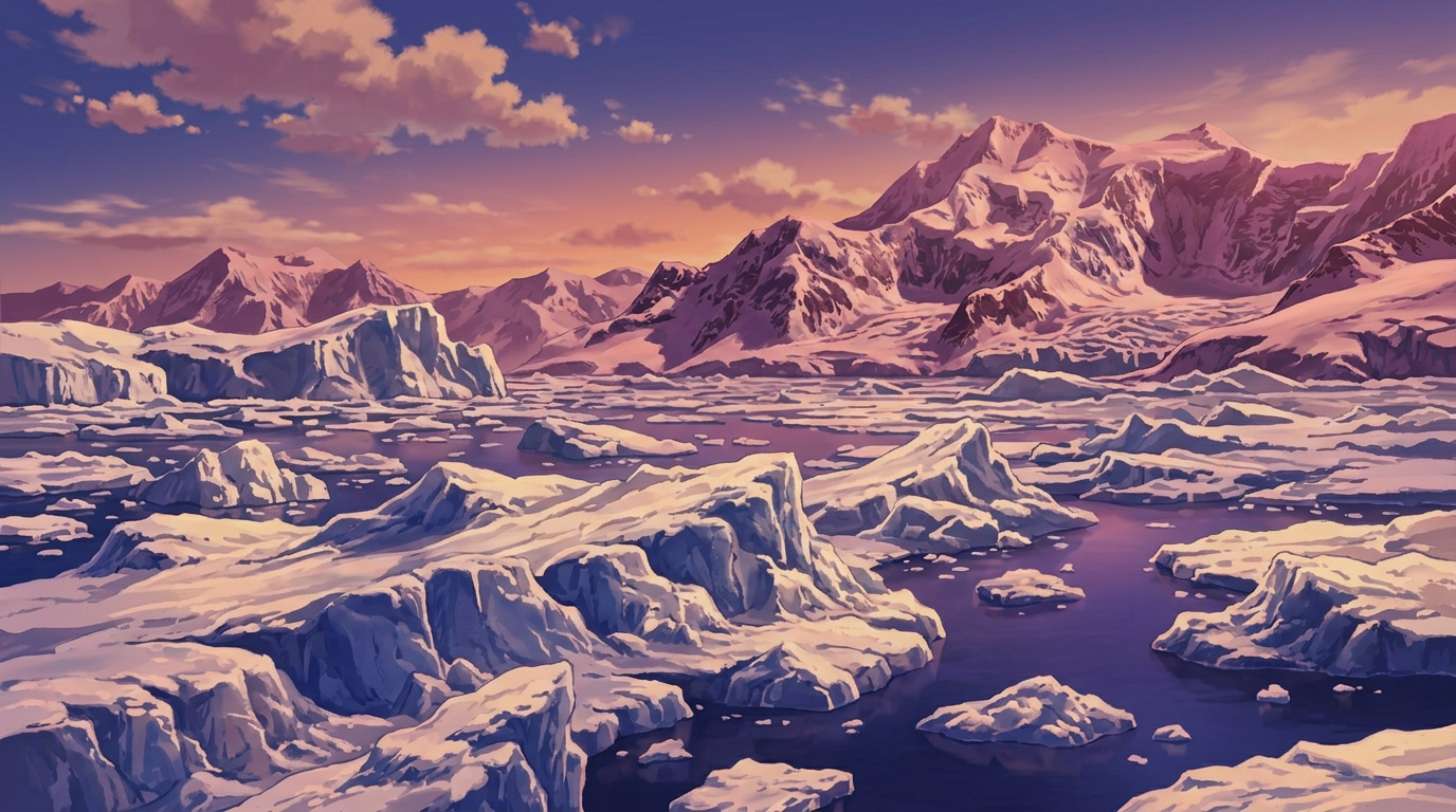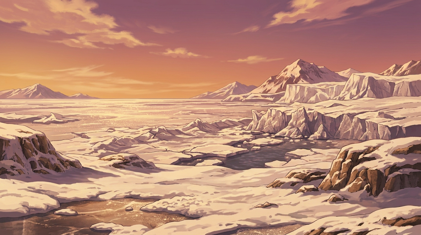 北極・南極の背景イラスト素材を無料配布。16:9の横長構図でPC向け作品に使いやすい背景イラストです。漫画・Webtoonやゲーム背景として商用・トレース利用もOK!