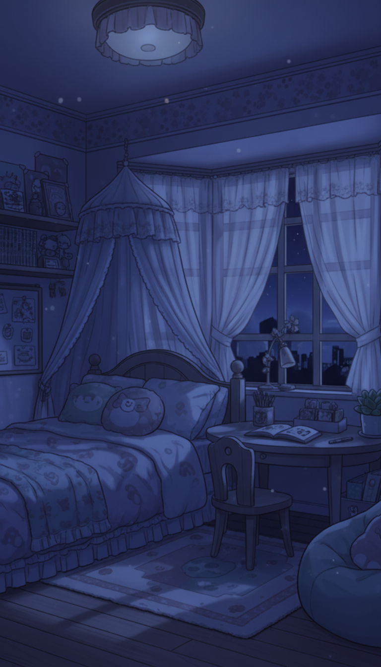 月明かりに包まれたガーリーベッドルーム|深夜の安眠シーン背景