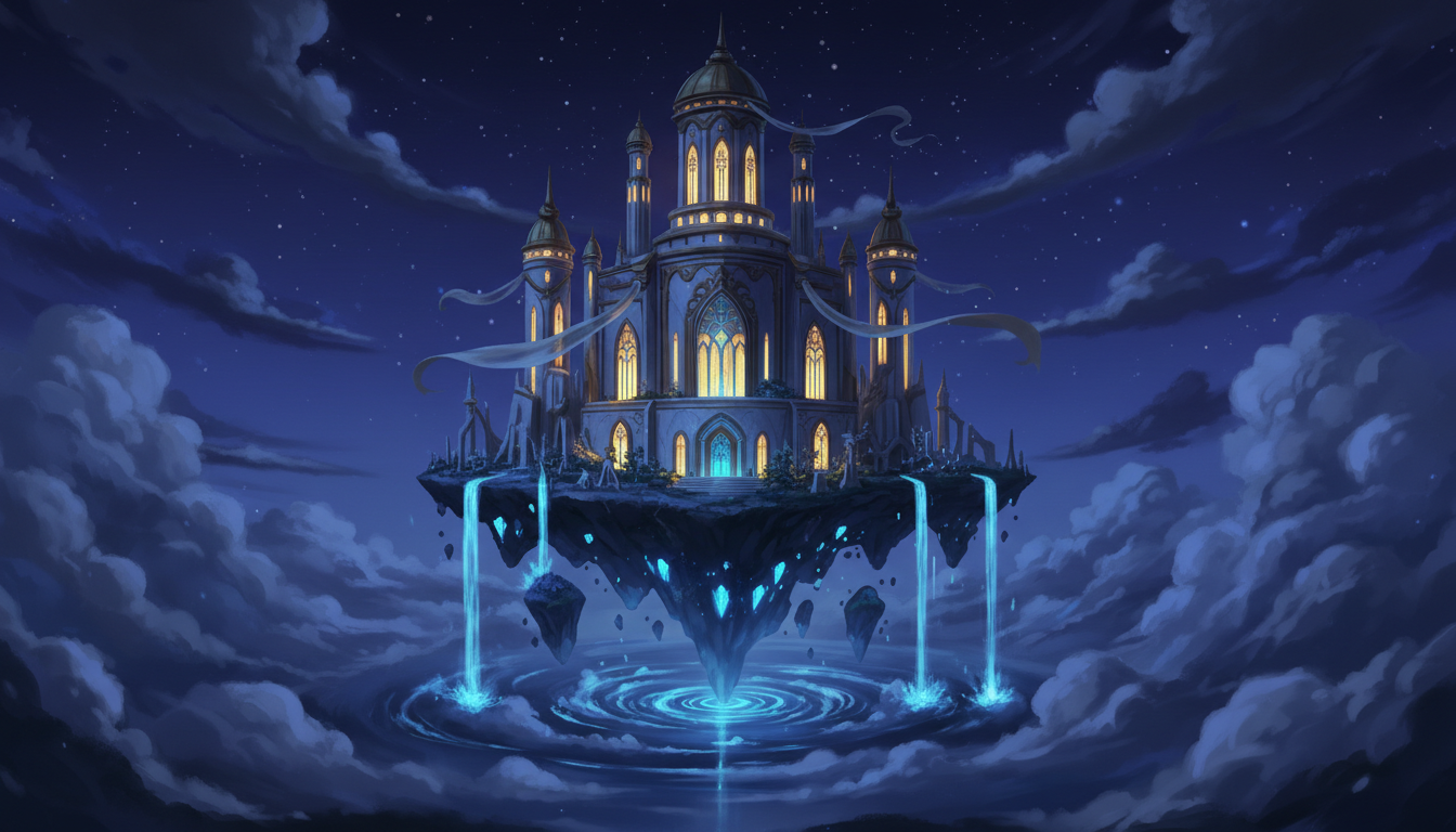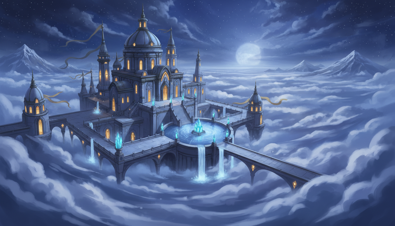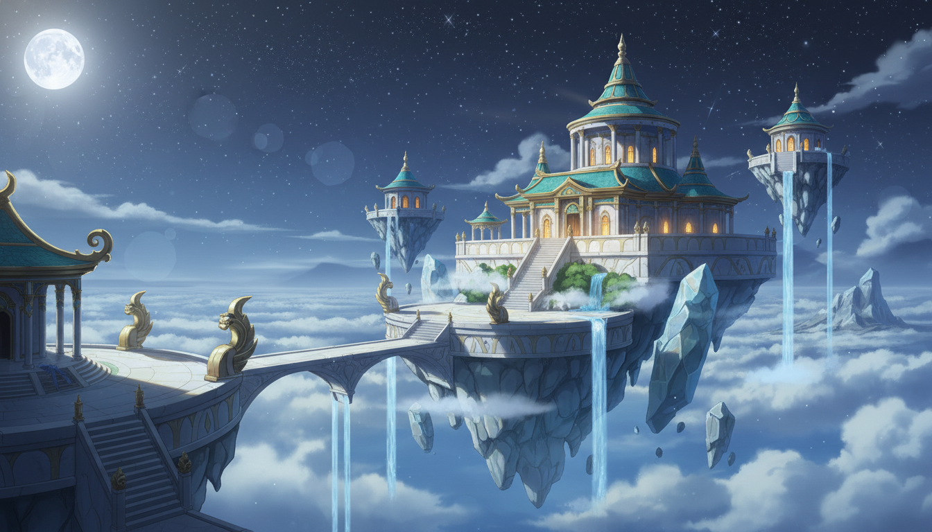 星明かりに浮かぶ天空神殿|神聖なファンタジー夜景素材