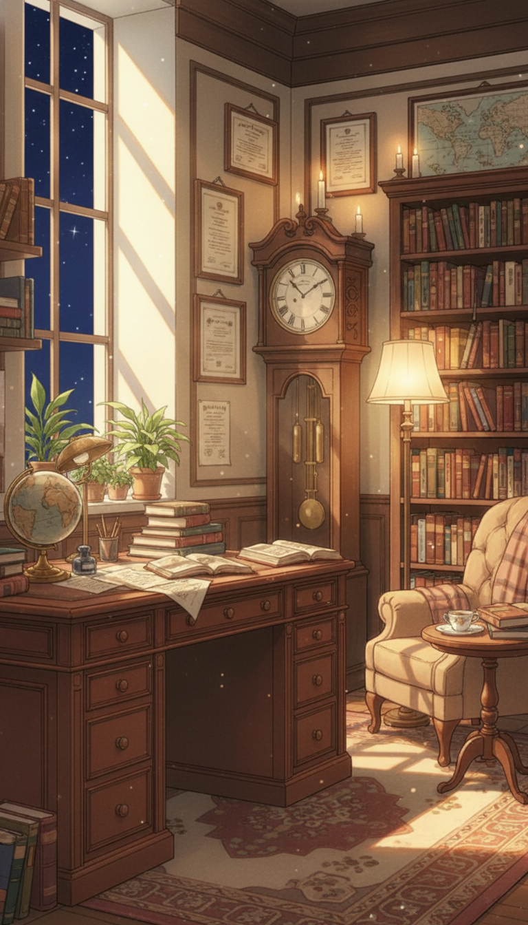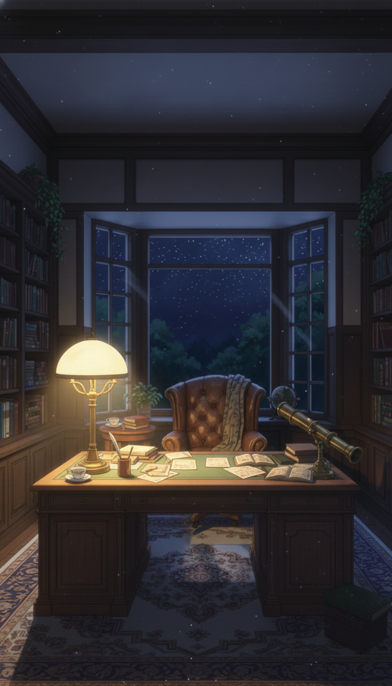 星降る夜の書斎|静かな知の探求空間
