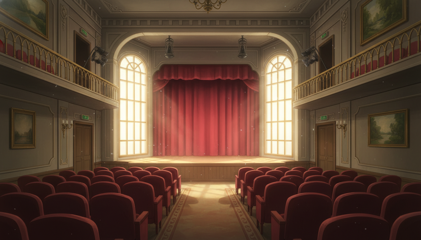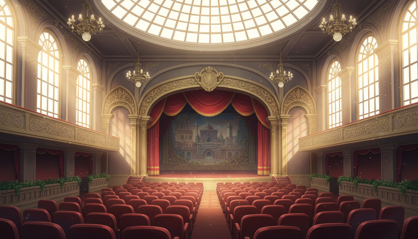 昼光が差し込むクラシカルな劇場で、温かみのあるシーン演出に使えます。
