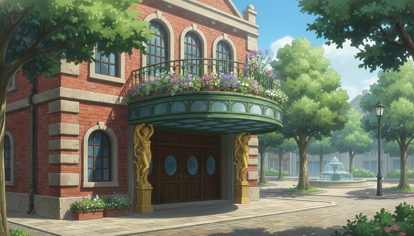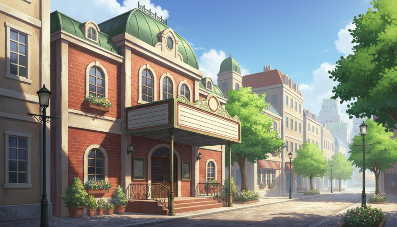 穏やかさのある劇場の外観背景素材です。