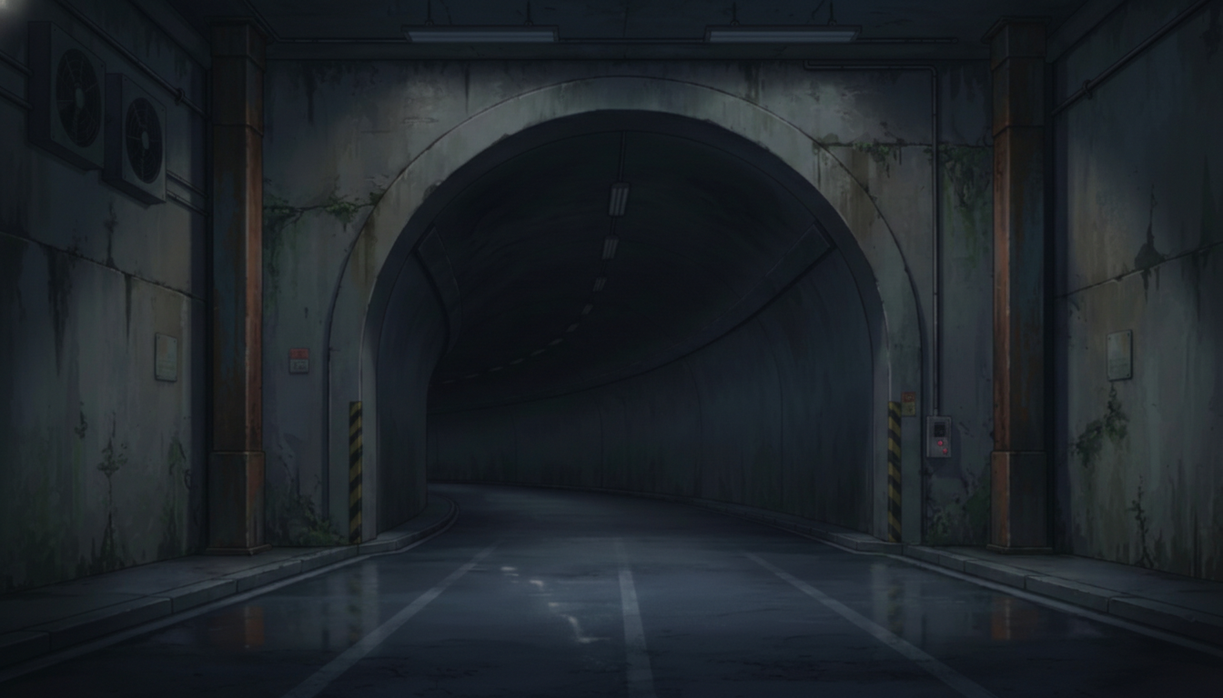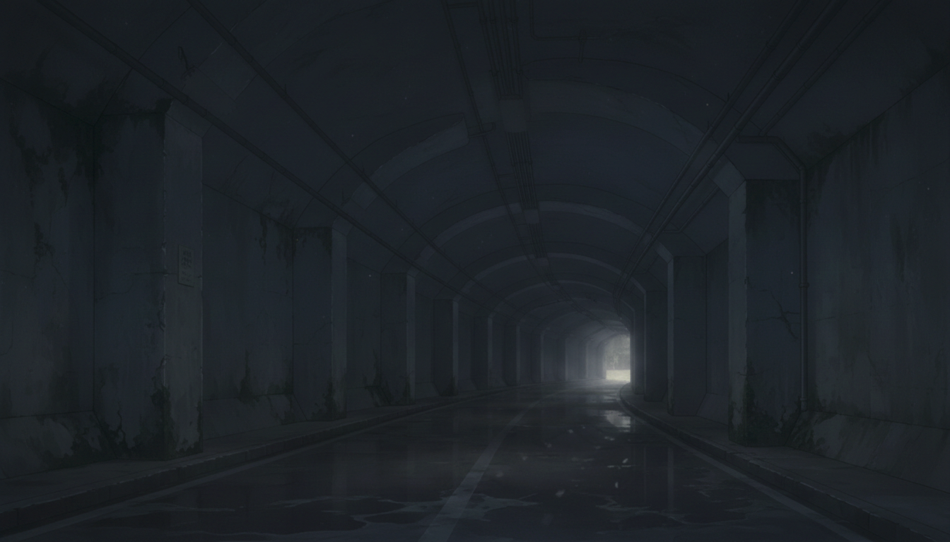 暗転した地下通路背景|不安感を演出するホラートンネル