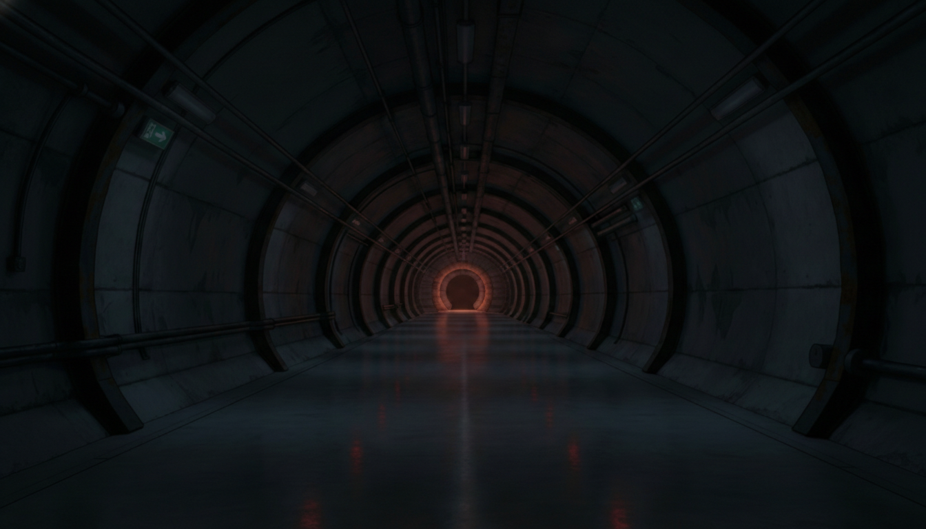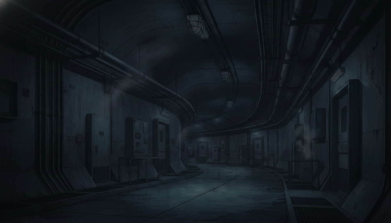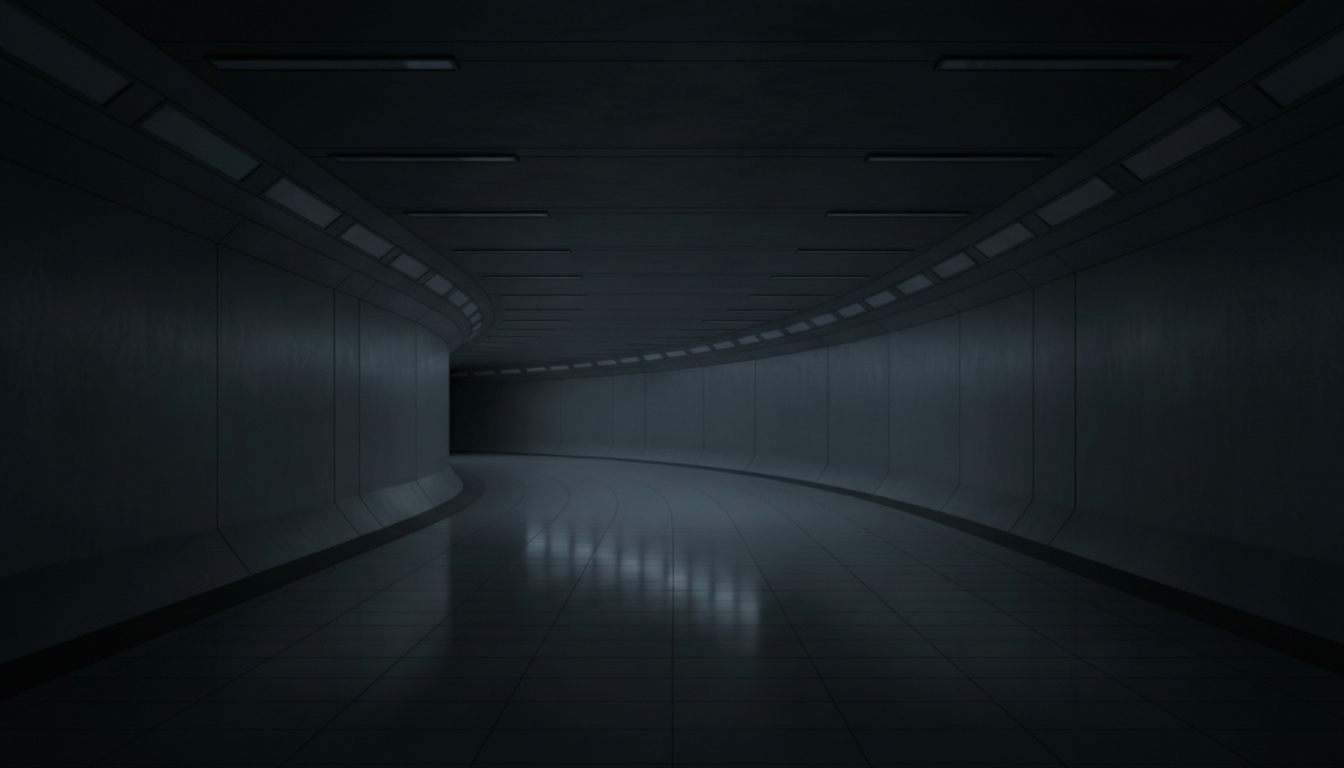 暗がりの近未来地下通路|静寂と緊張のSF空間