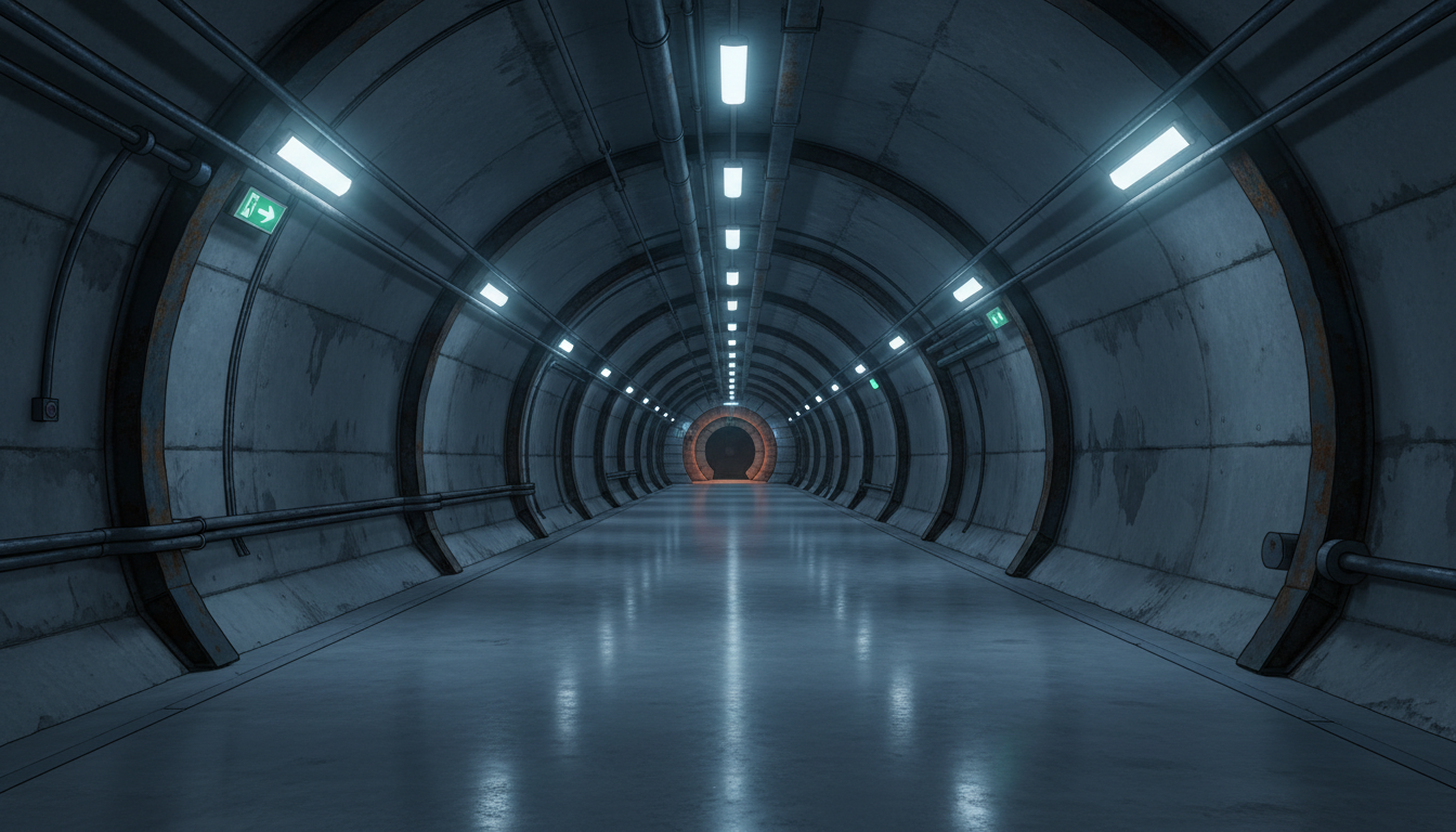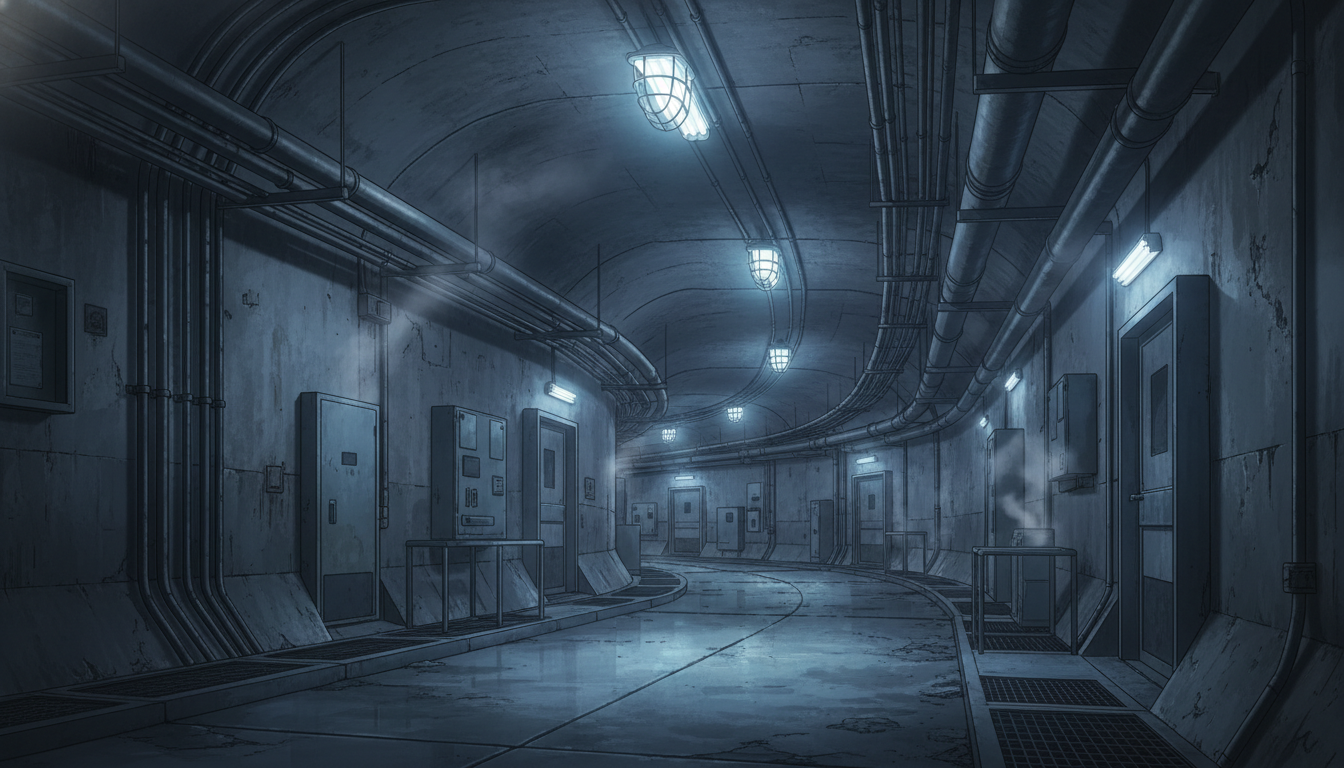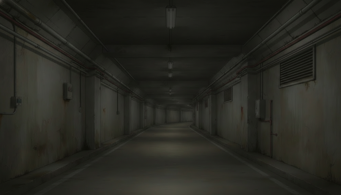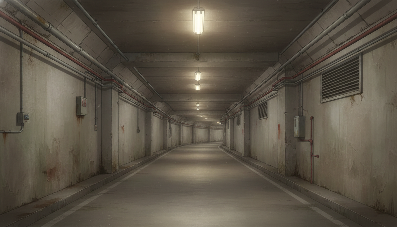 暗がりの近未来地下通路|静寂と緊張のSF空間