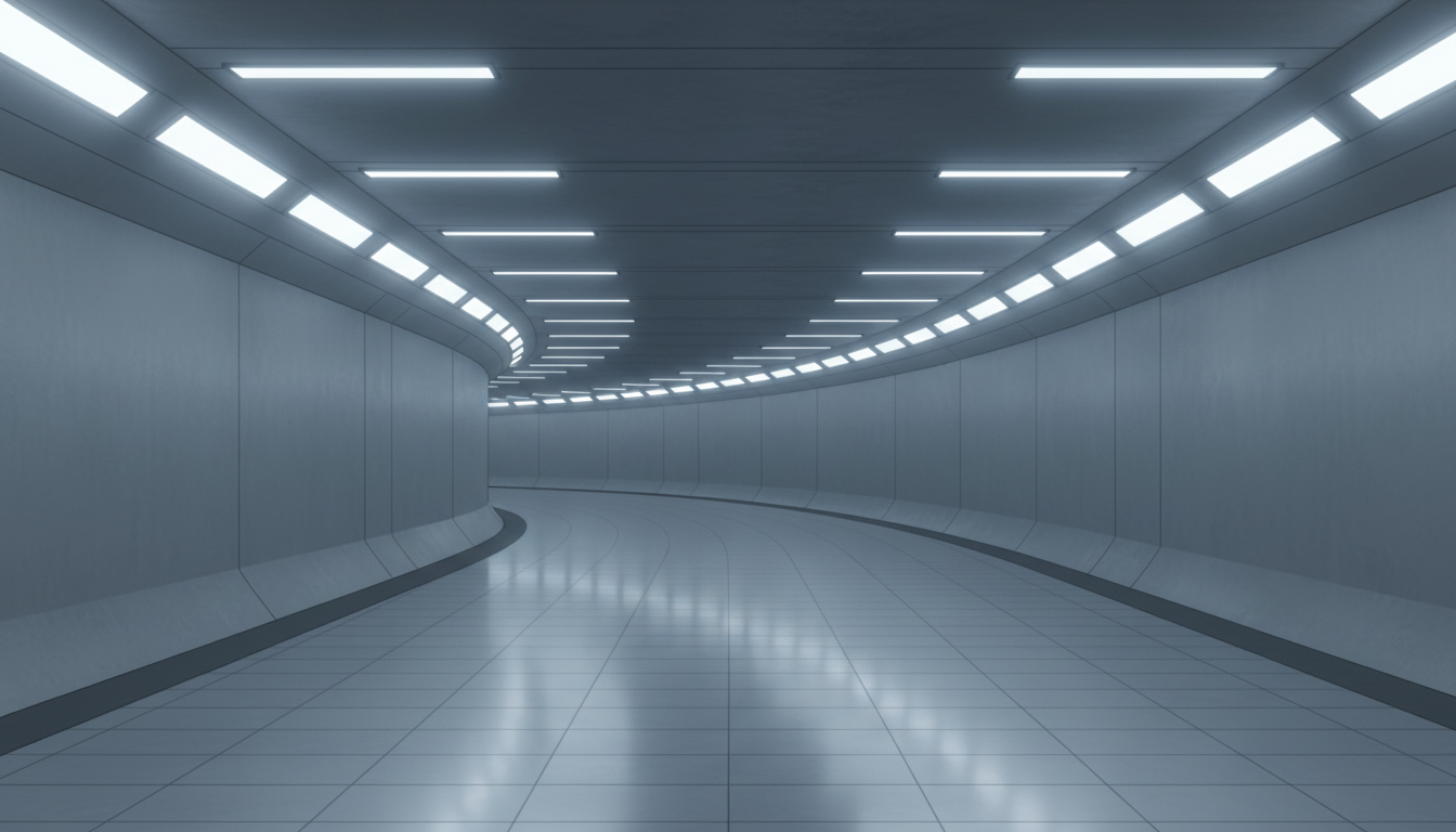 湾曲する地下通路背景|奥行きを感じる未来通路