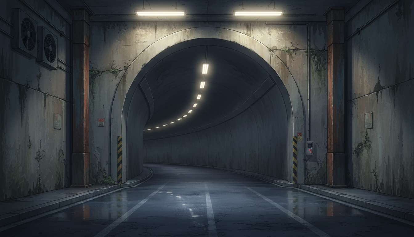 暗闇に沈む円形地下通路|視認性の低い危険エリア