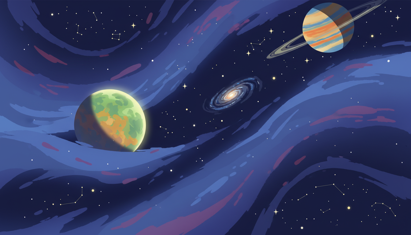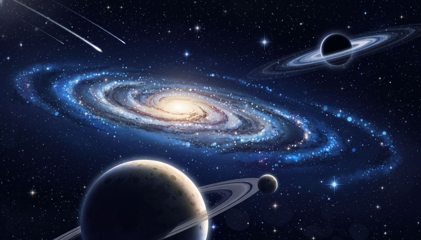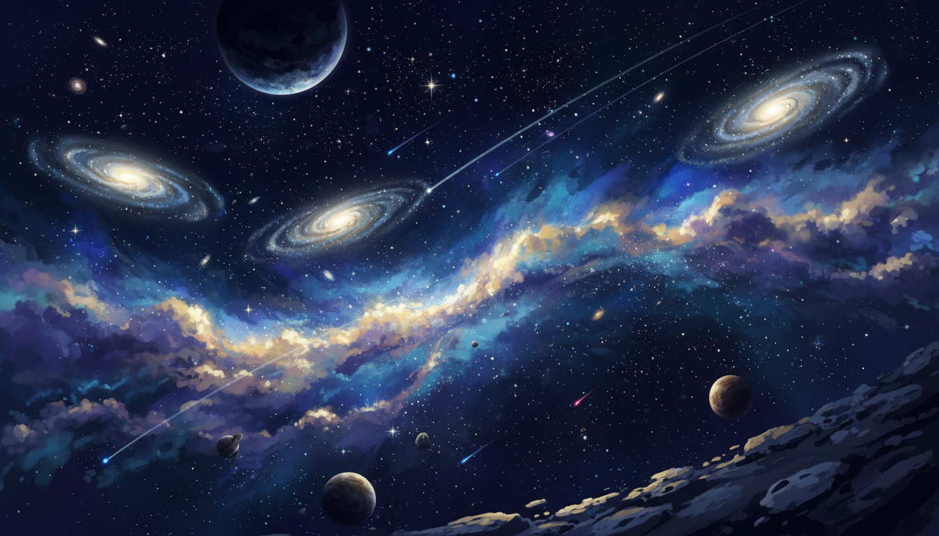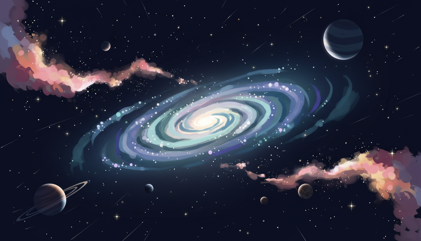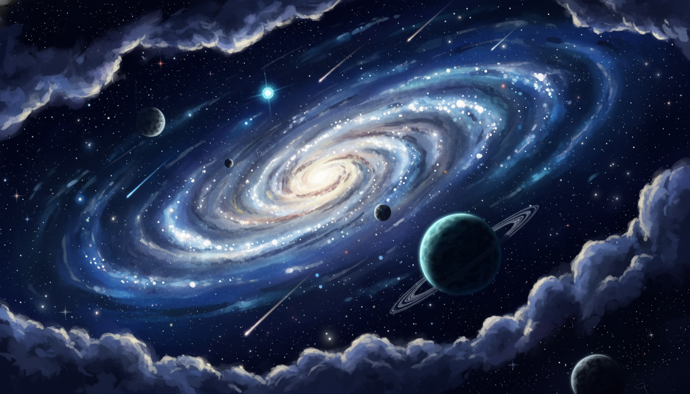 淡色銀河と惑星群|幻想的ナイトスカイ背景