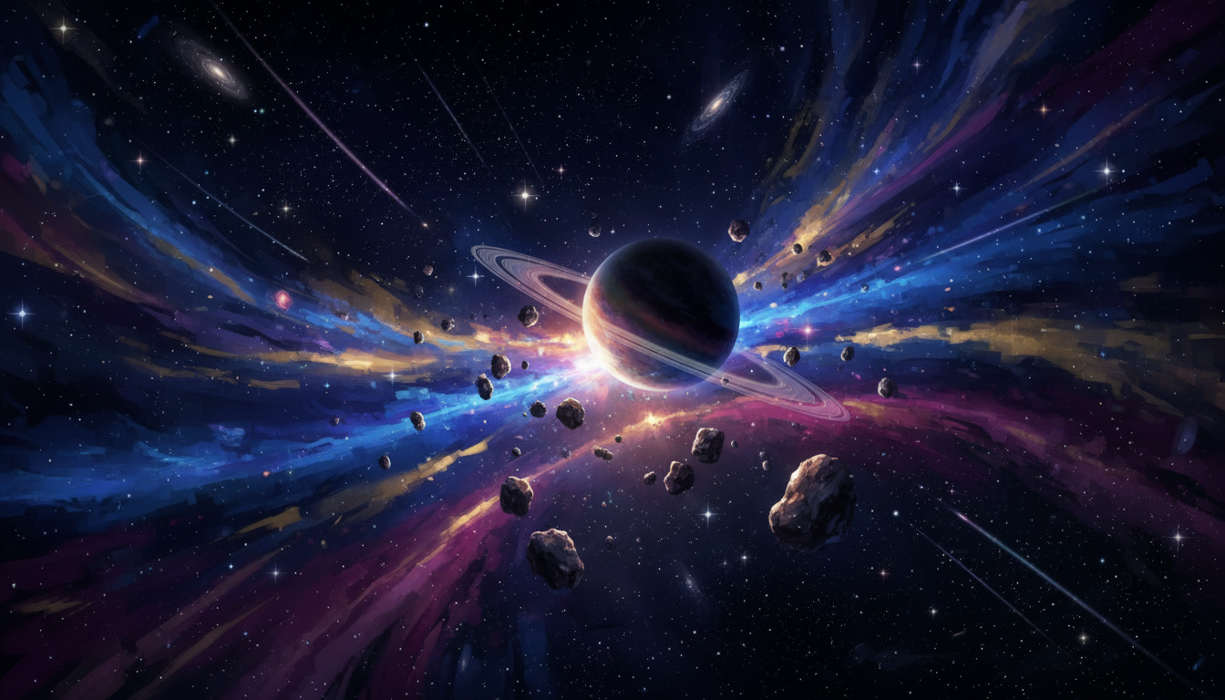巨大な惑星と漂う小惑星が、SF感あふれる宇宙シーンに適しています。