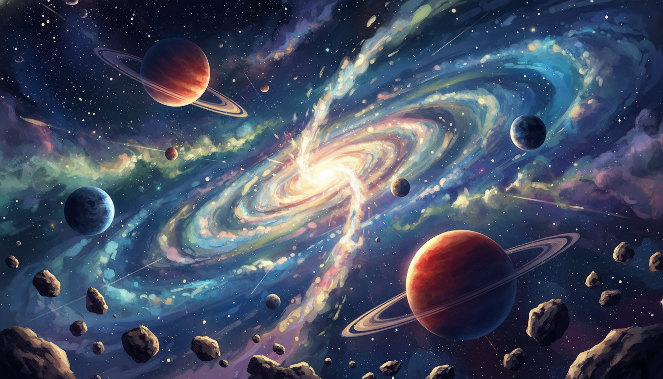 渦巻銀河と多惑星帯|ダイナミック宇宙背景