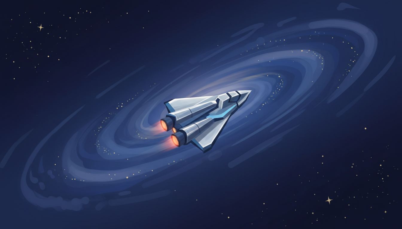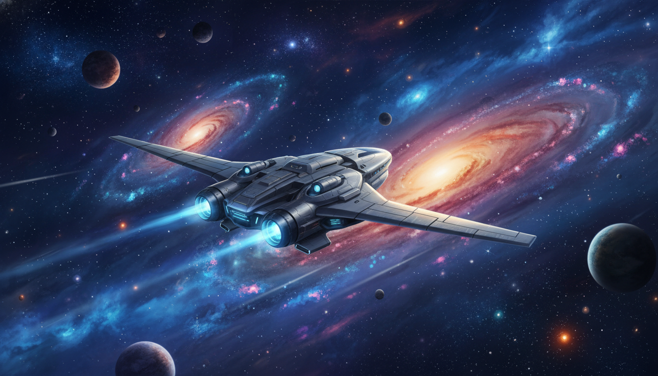 銀河間を進む宇宙船|冒険SF背景イラスト