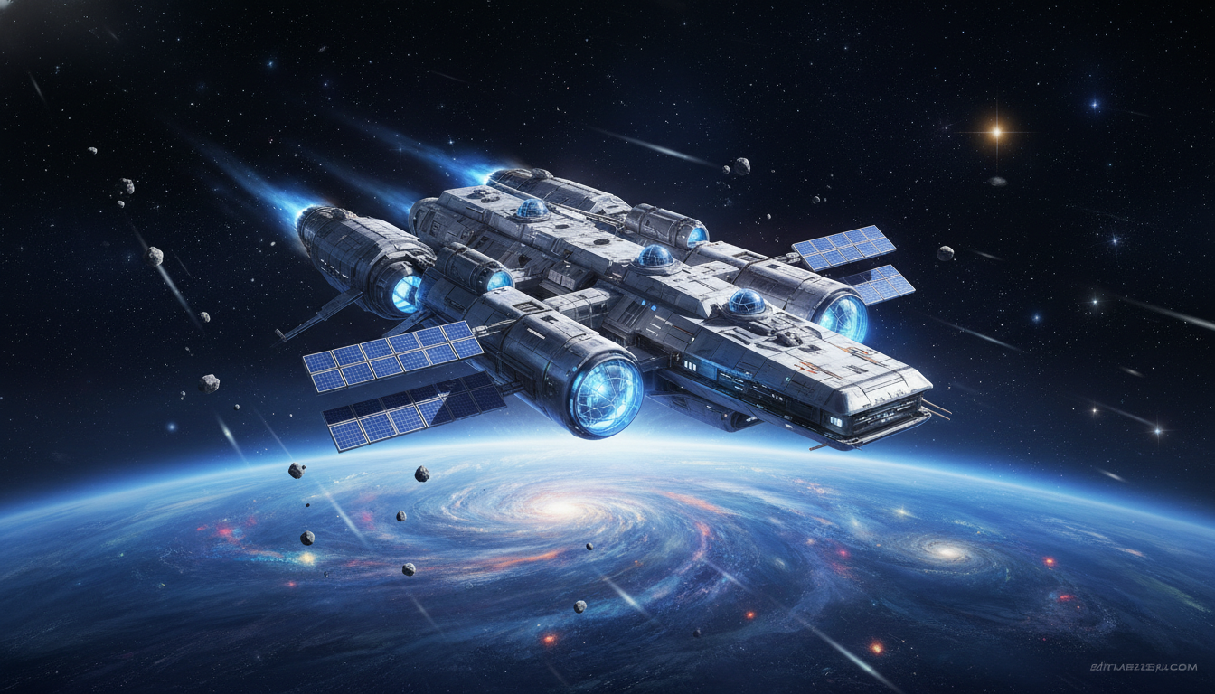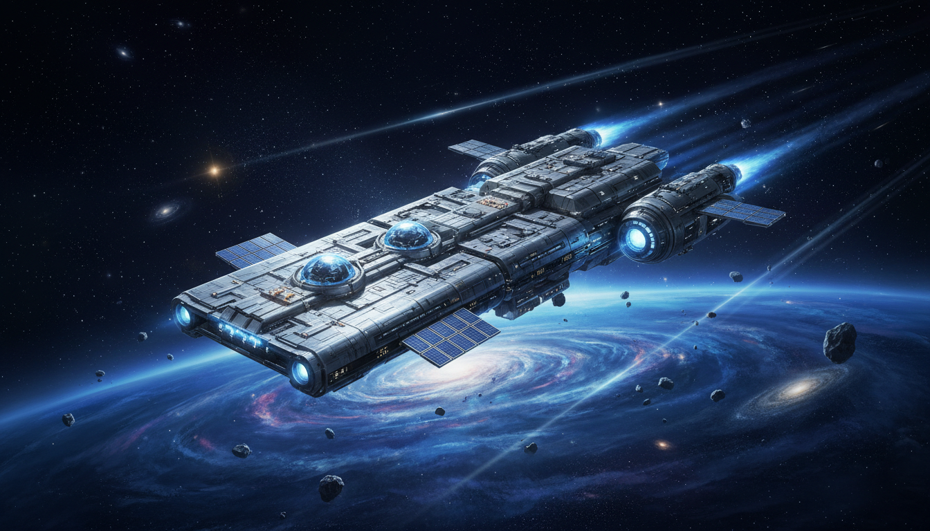 精密な艦体表現がSF作品のビジュアルに適した背景です。
