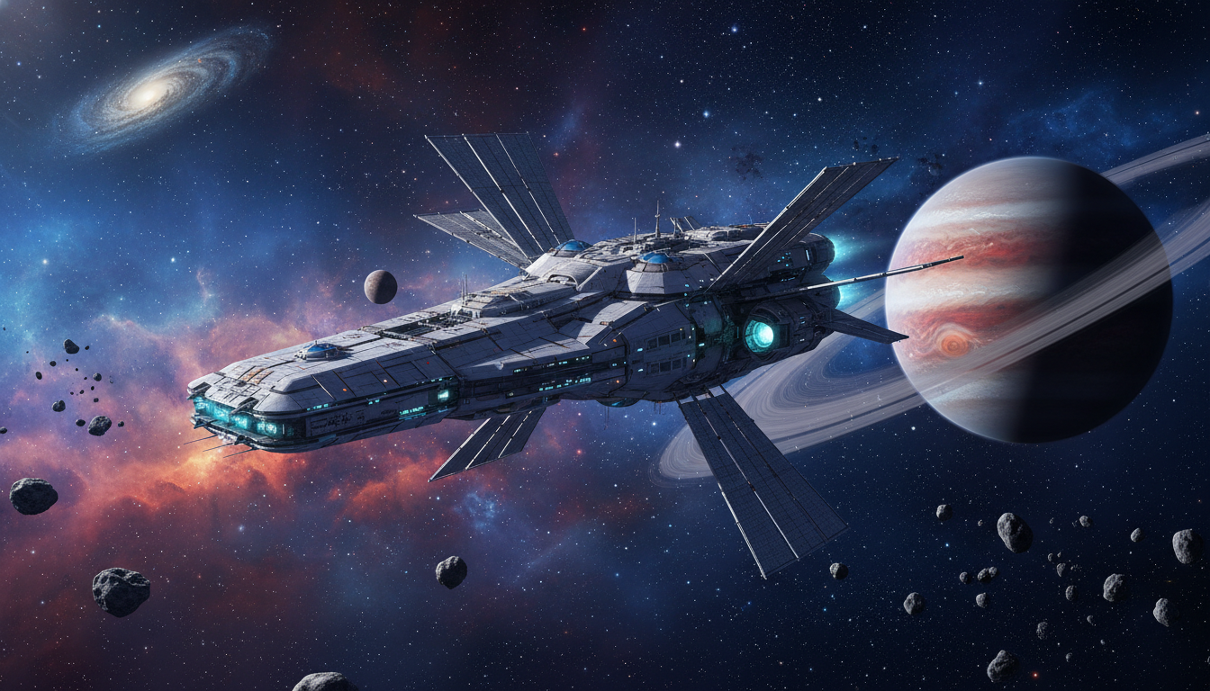 巨大宇宙艦と惑星軌道|ハードSF宇宙背景