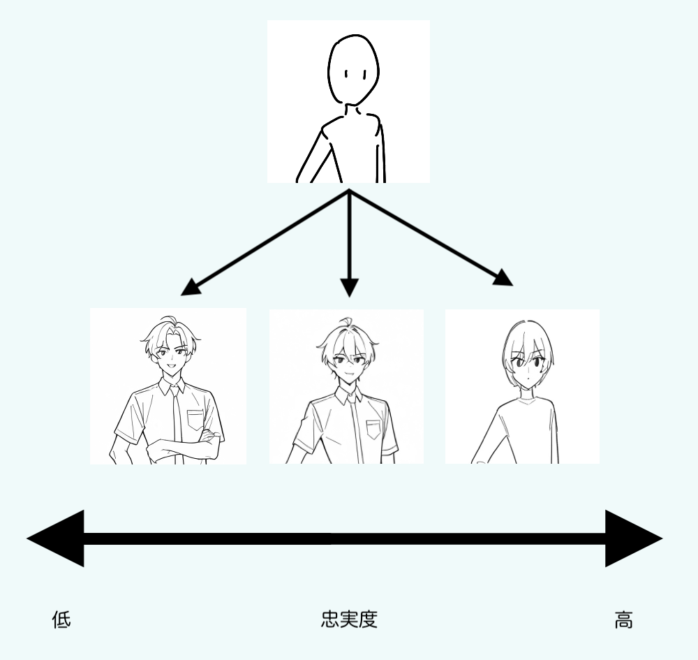 では、同じラフで忠実度だけ変更すると、出力結果はどうなるでしょうか。