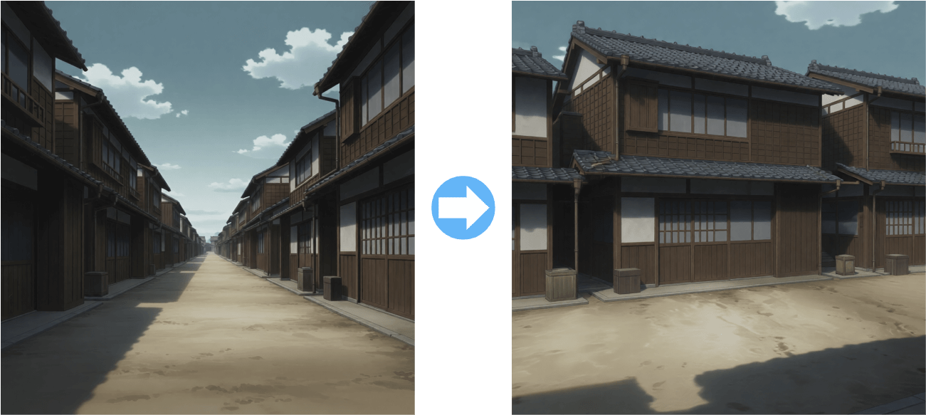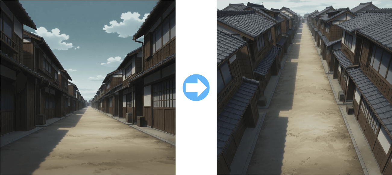 In animation, it’s common to use a single background across multiple cuts. By using Camera Angle Control AI, you can: