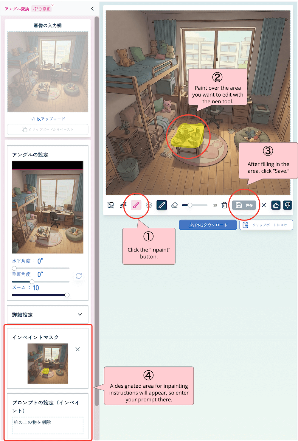 Click the save button to confirm the area you want to inpaint. Even after saving, you can still make adjustments.