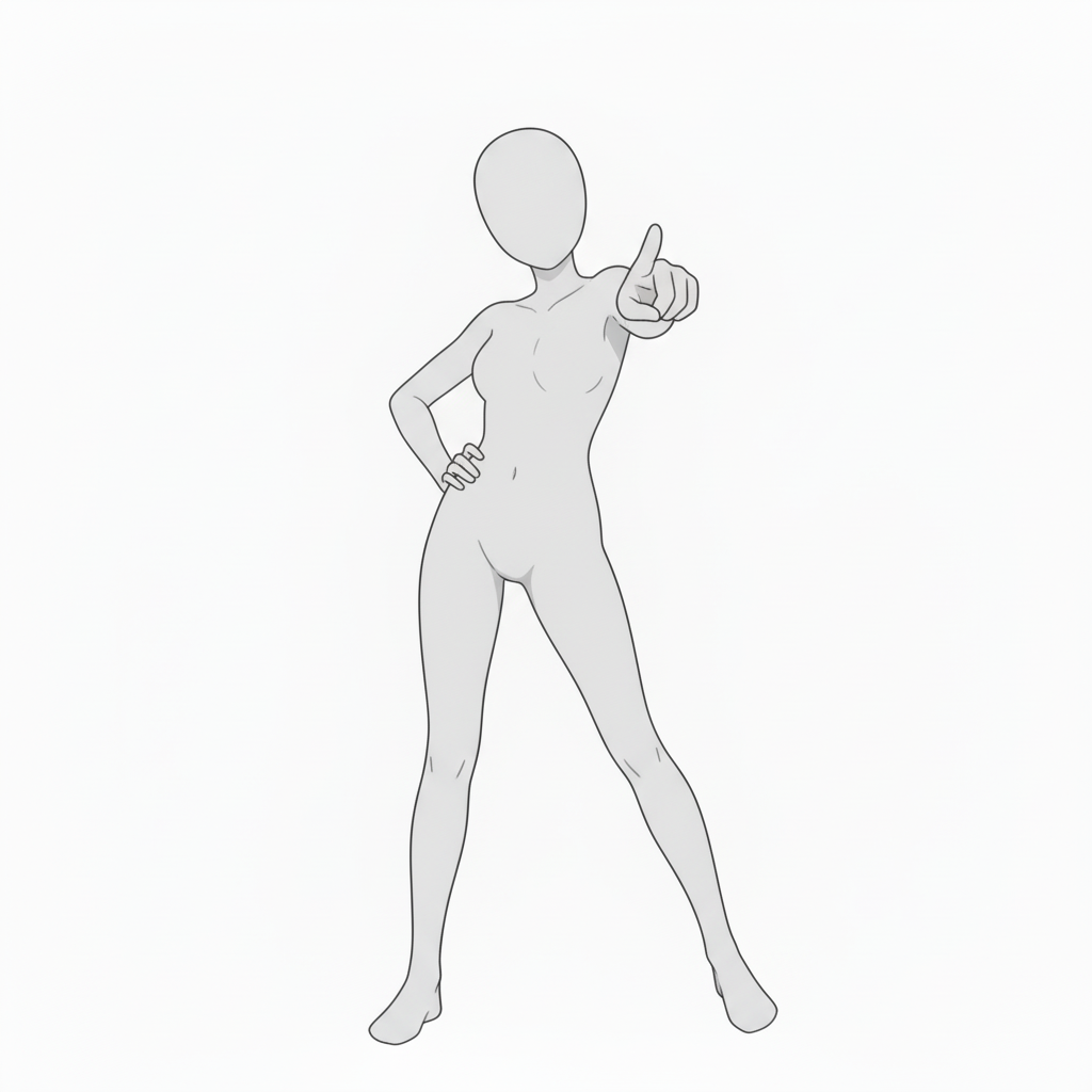 A strong pointing pose—useful for warnings, emphasis, or punchlines.
