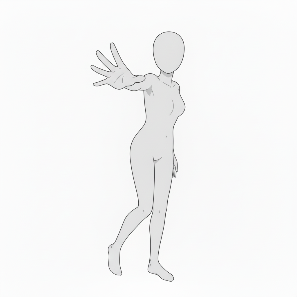 Emphasizes perspective from forearm to hand. Ideal for reaching/calling scenes.