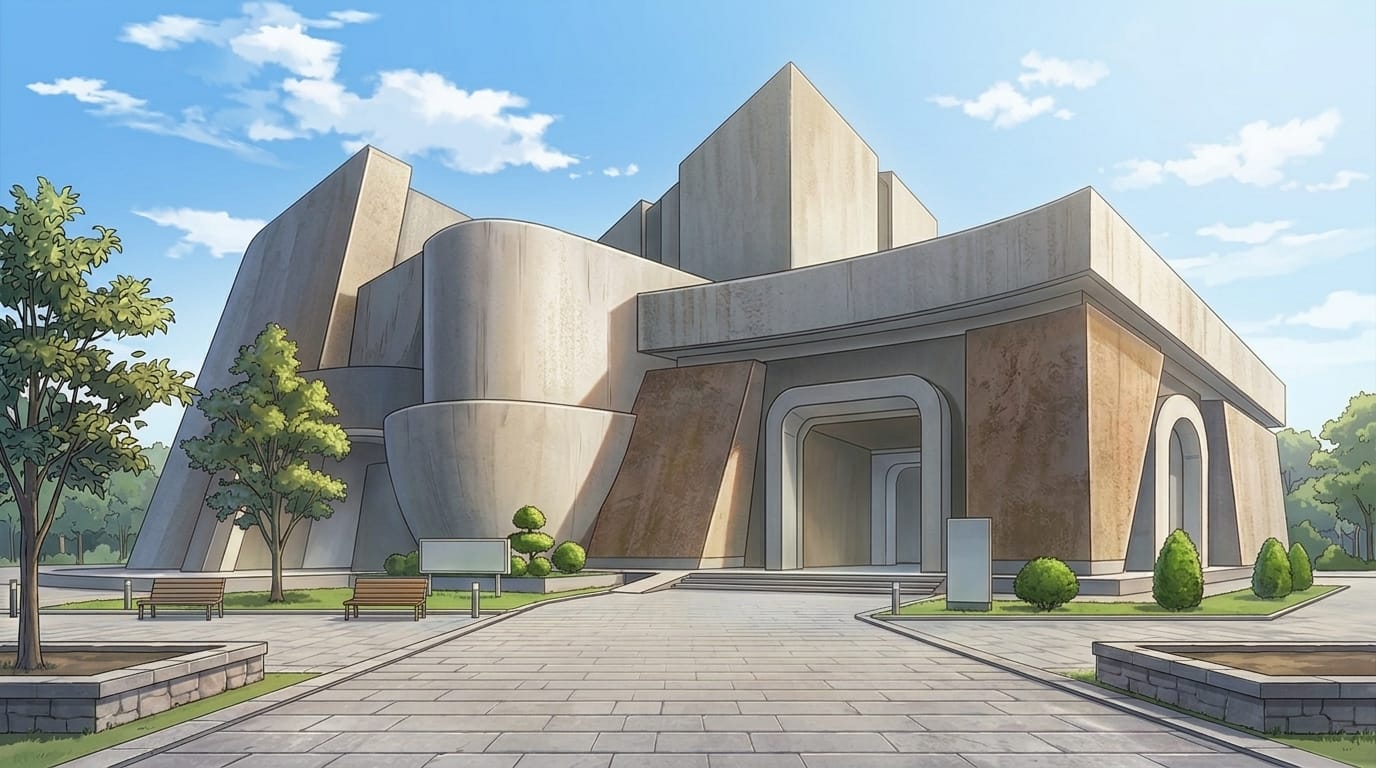 - Modern Museum Exterior with Plaza | Contemporary Architecture Background Illustration