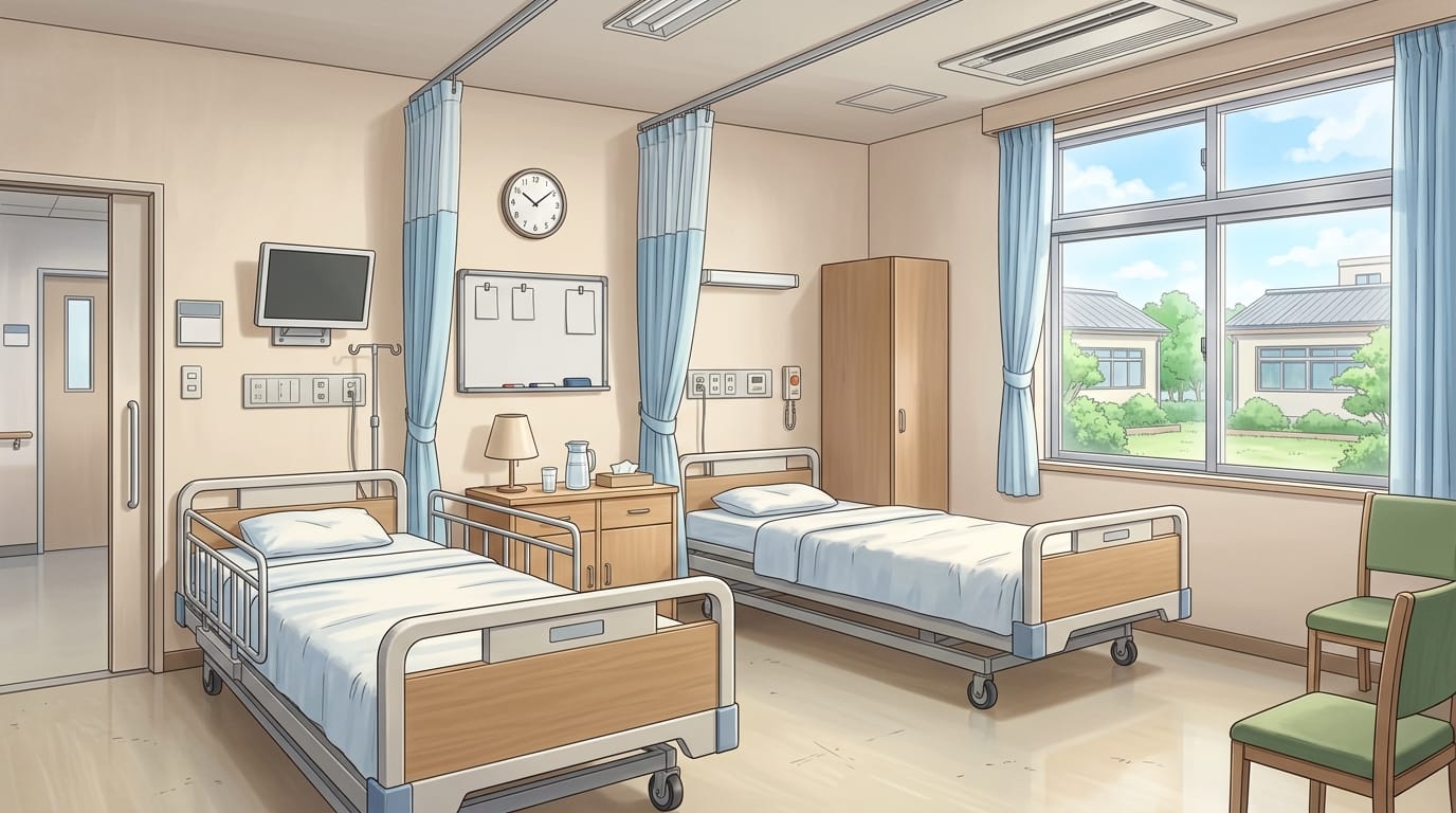 Bright shared hospital room with two beds | Background illustration asset
