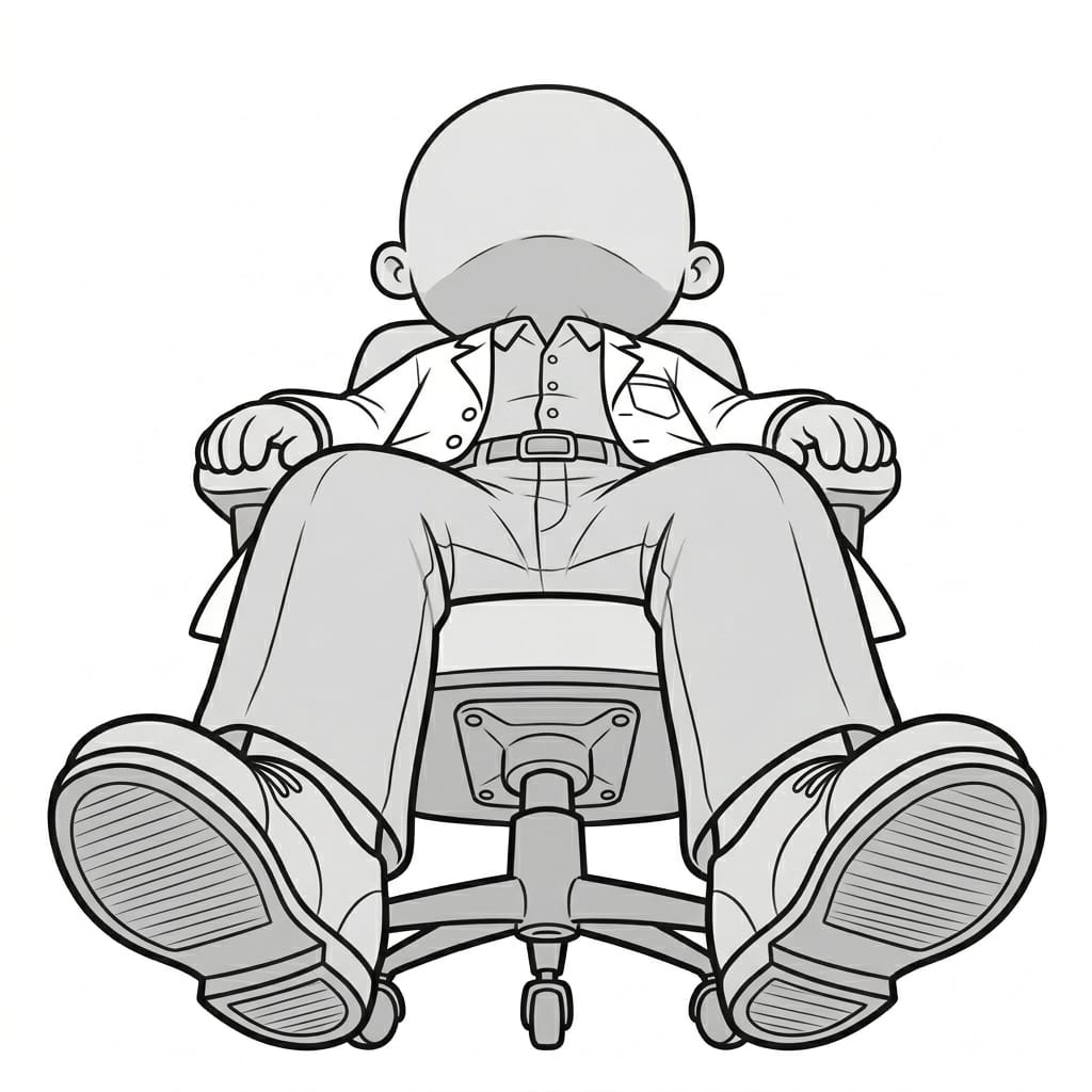 A cute sitting pose on a chair, useful for examination or waiting scenes.