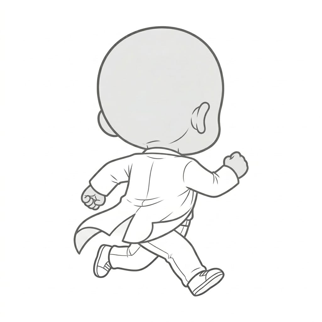 Back view running pose of a child in a lab coat | Chibi running pose asset