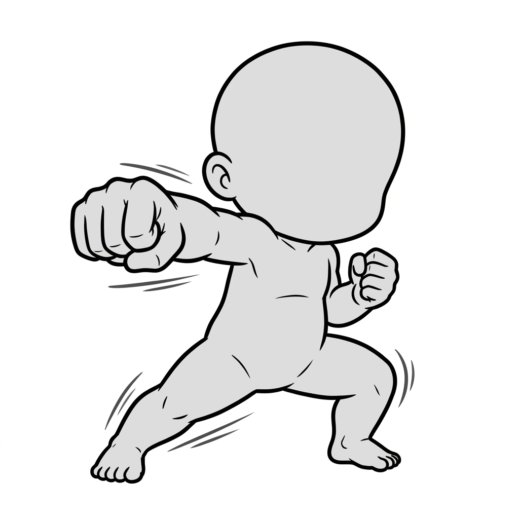 勢いのある一撃を表現できる、アクション向けのデフォルメポーズ素材です。