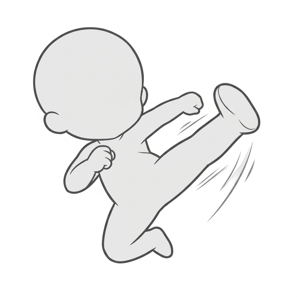 空中ハイキックのデフォルメポーズ|ちびキャラバトルアクション素材