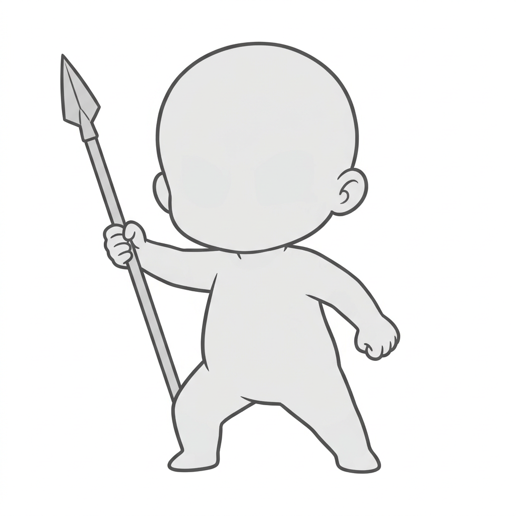 槍を構えるデフォルメ槍兵|ちびキャラ長柄武器ポーズ素材