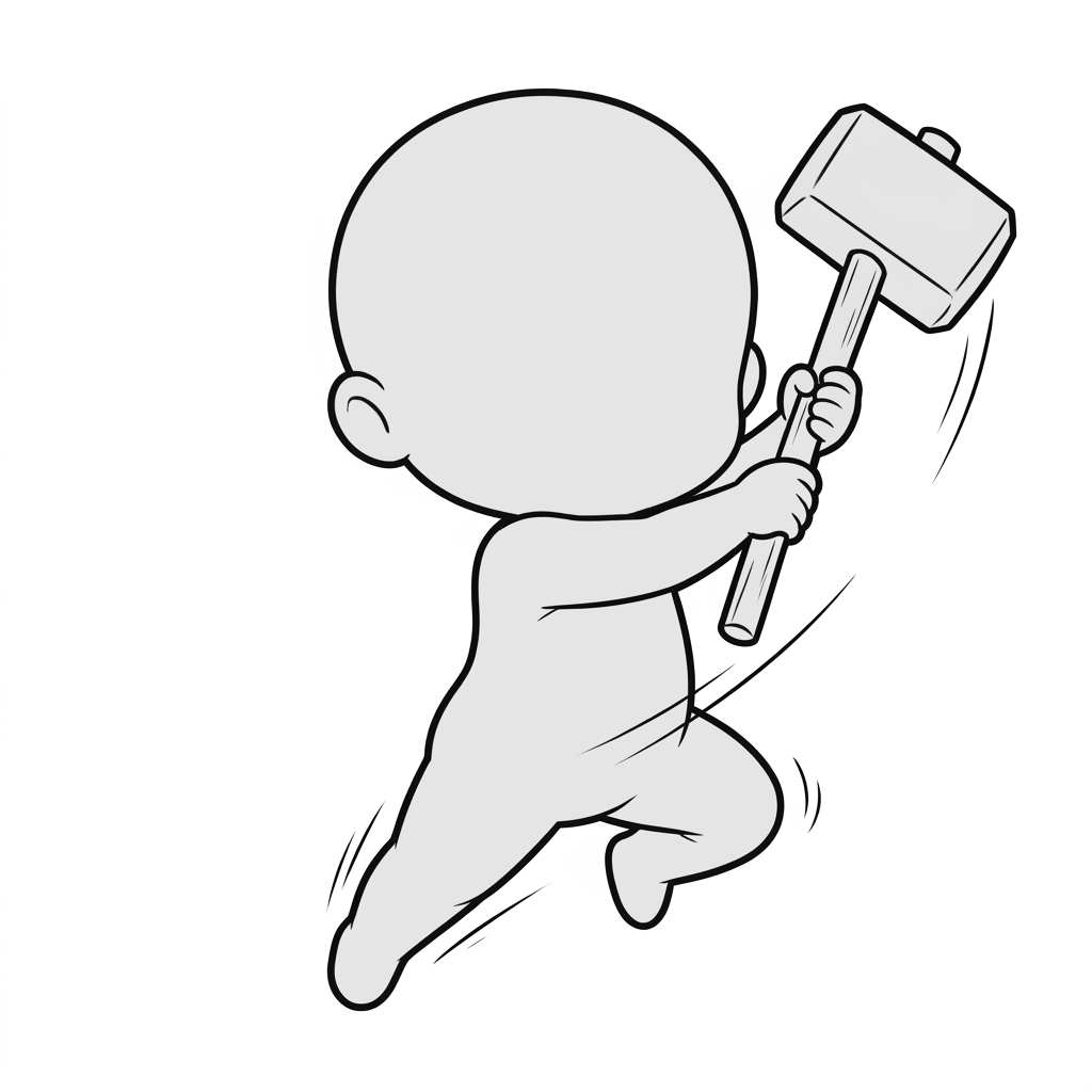 ハンマーを振り上げるデフォルメ戦士|ちびキャラ武器アクション素材